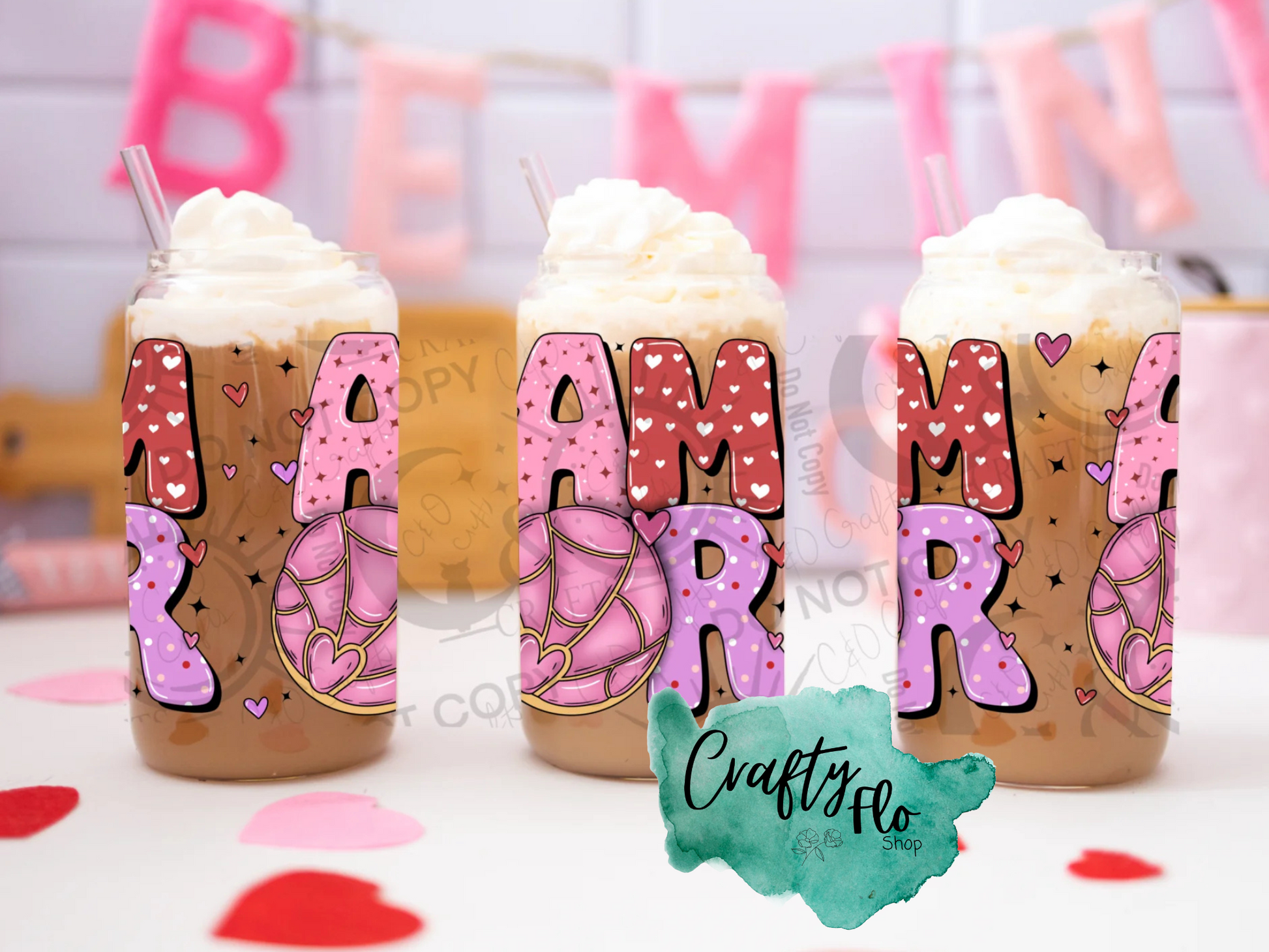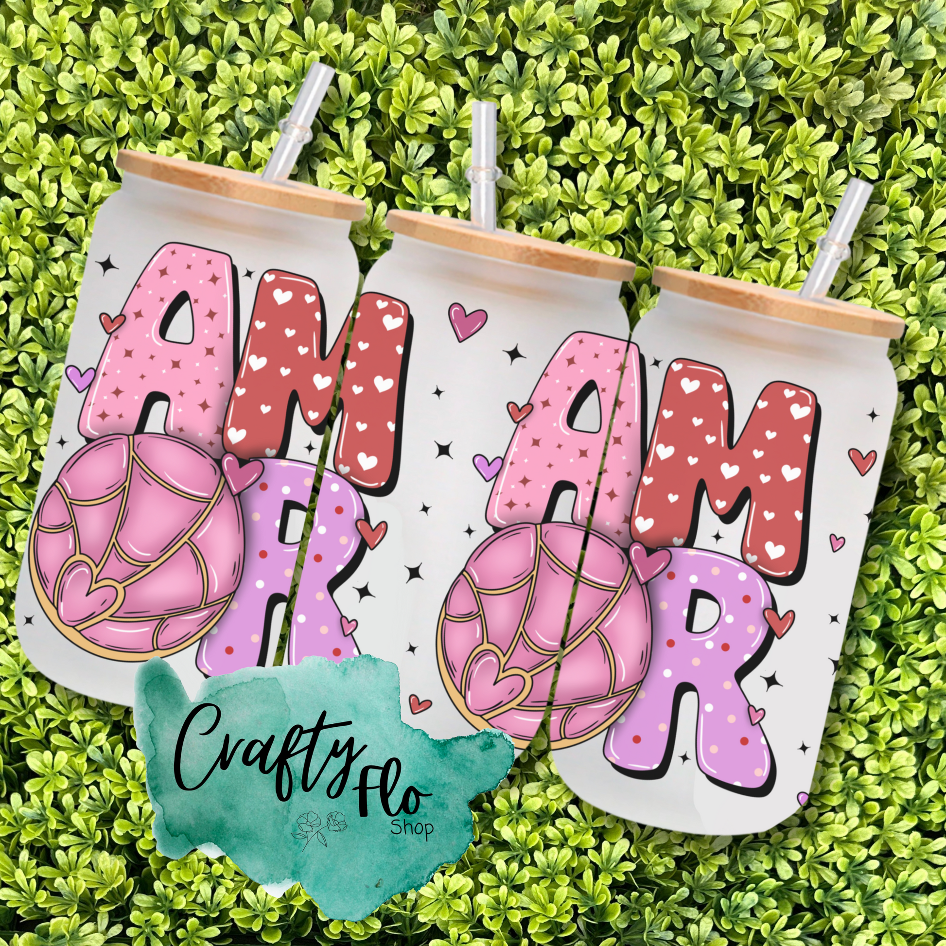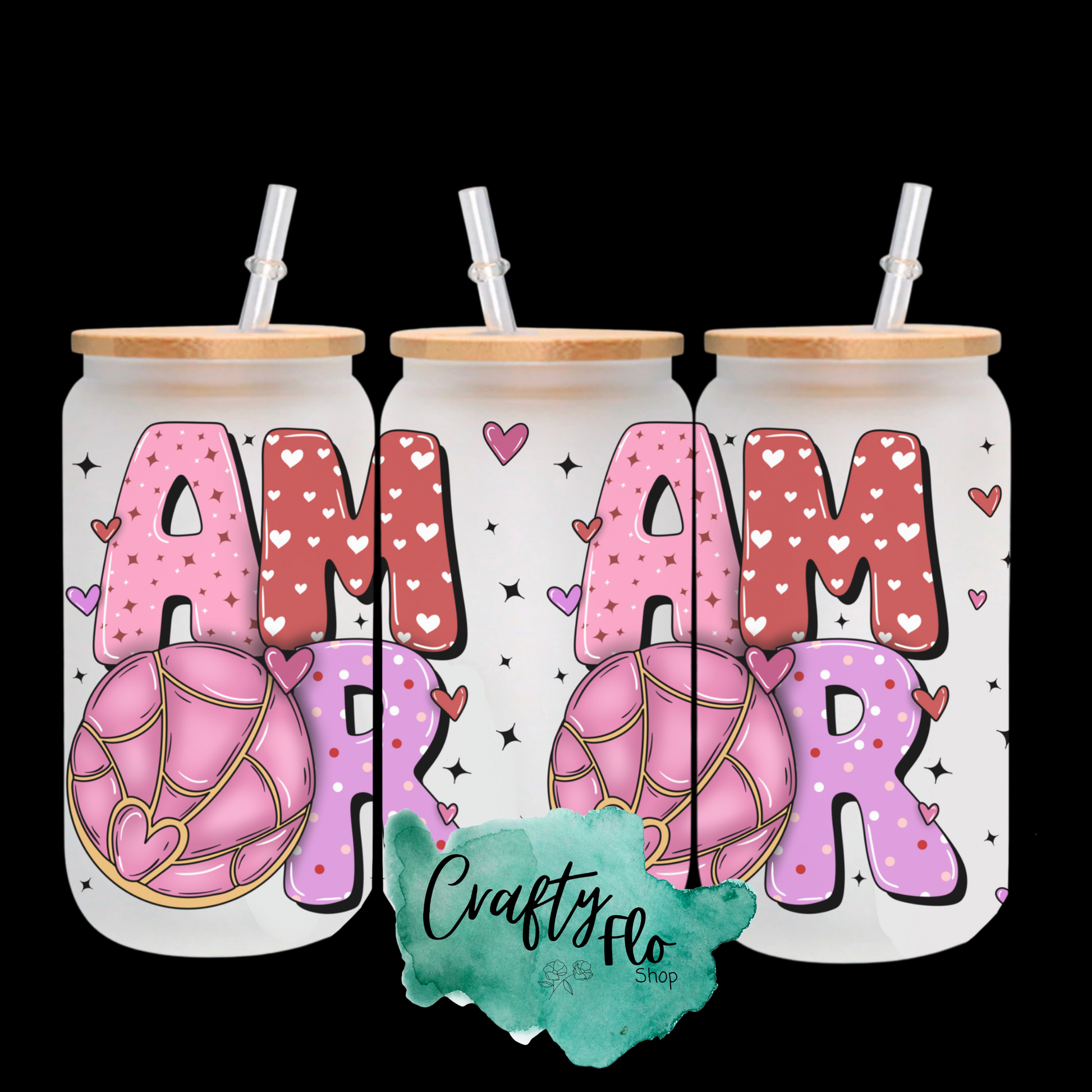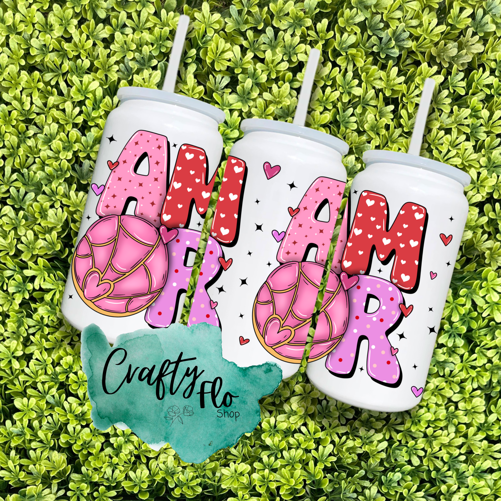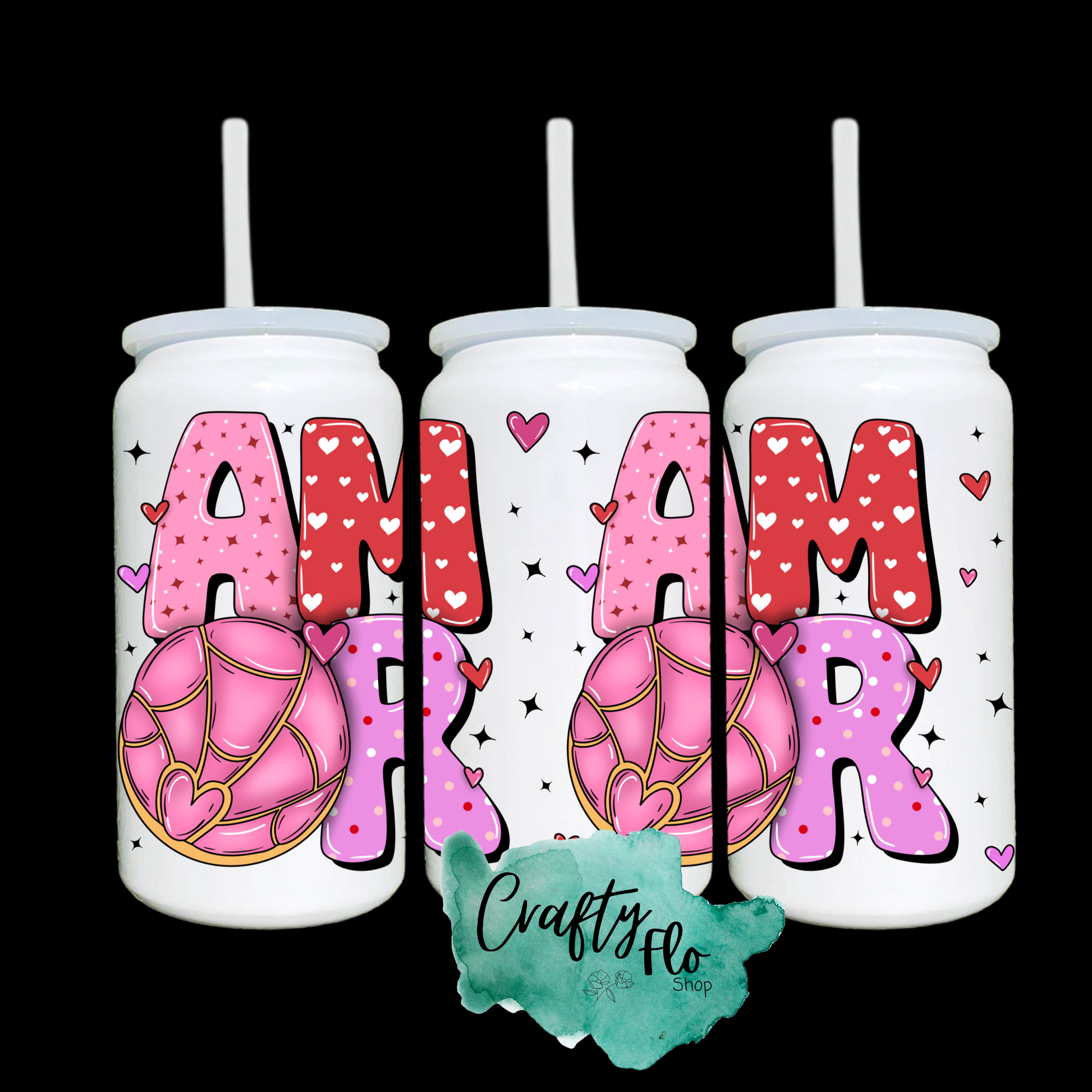 Amor 16 oz glass or stainless steel can Tumbler with Straw, Durable Design, bamboo or acrylic Lid, Fun and Functional Beverage Drinkware