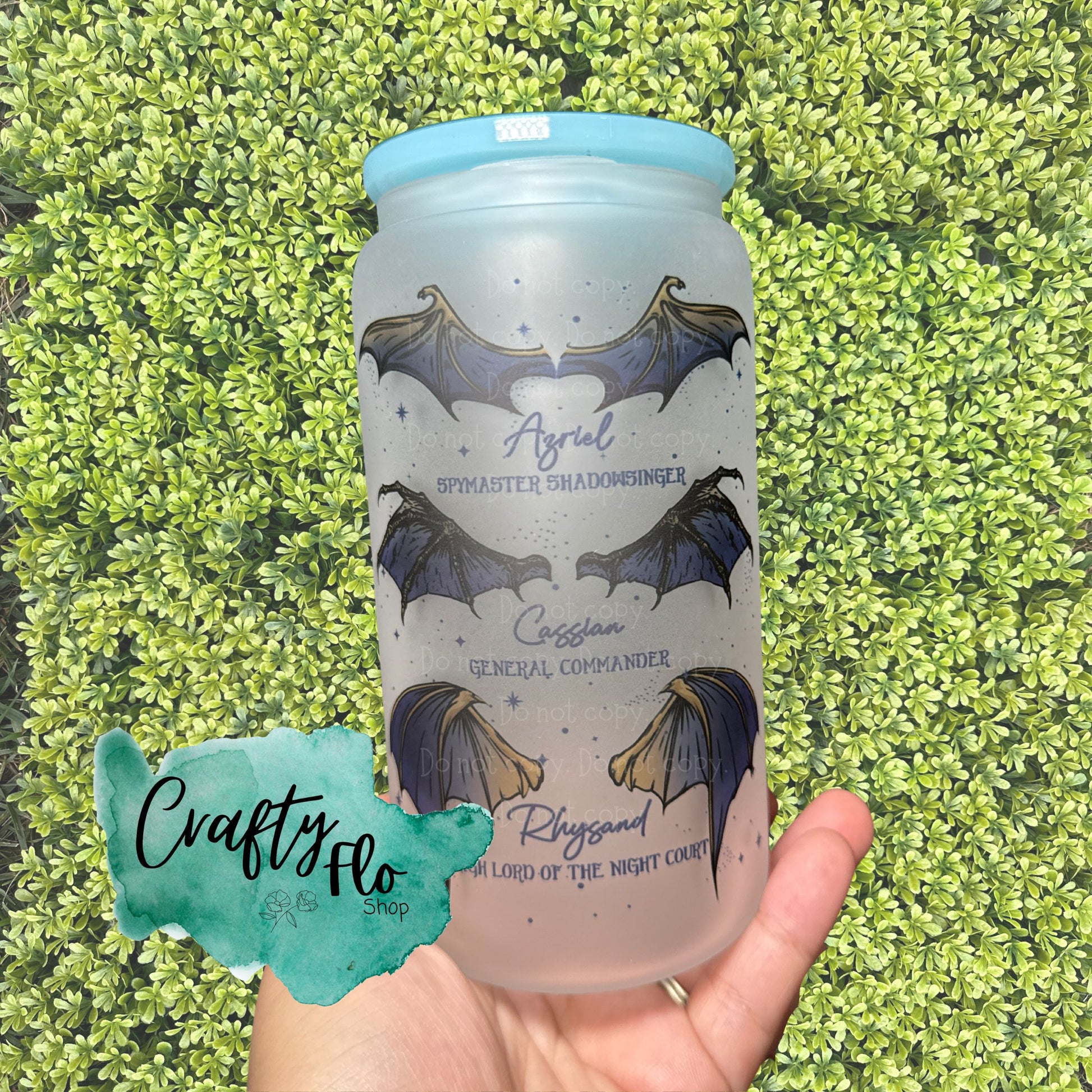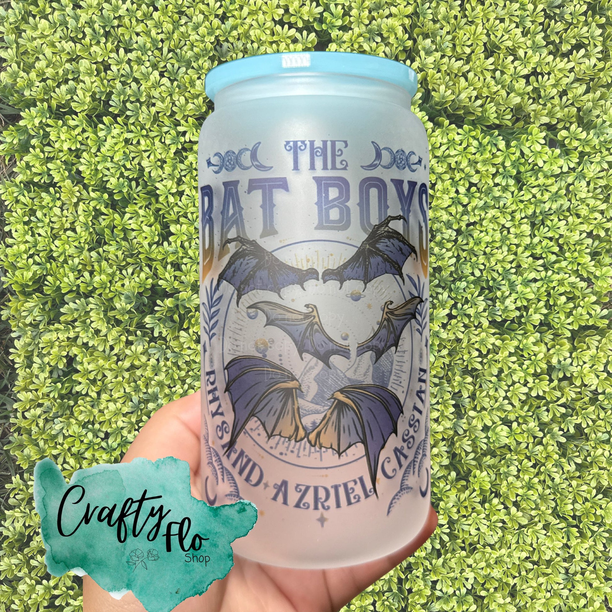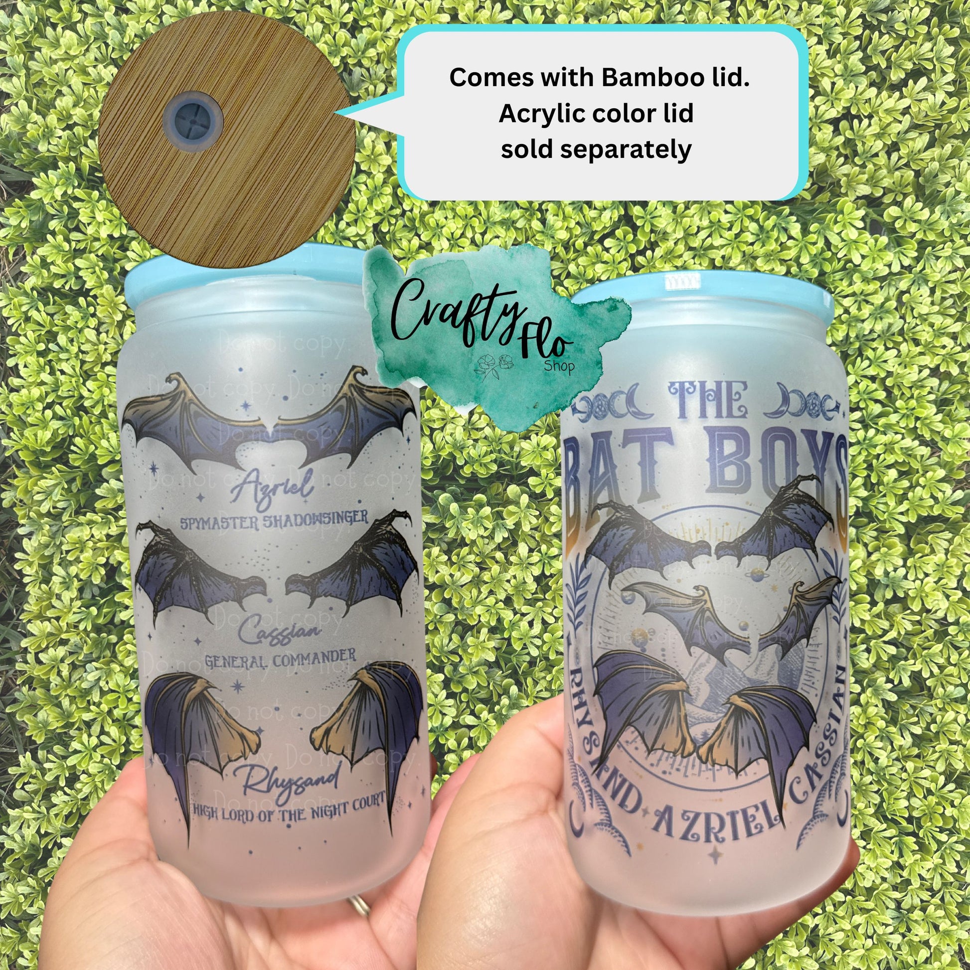 Bat Boys Inspired fantasy Book| 16oz clear or frosted glass can with bamboo lid and straw Cup Drinkware