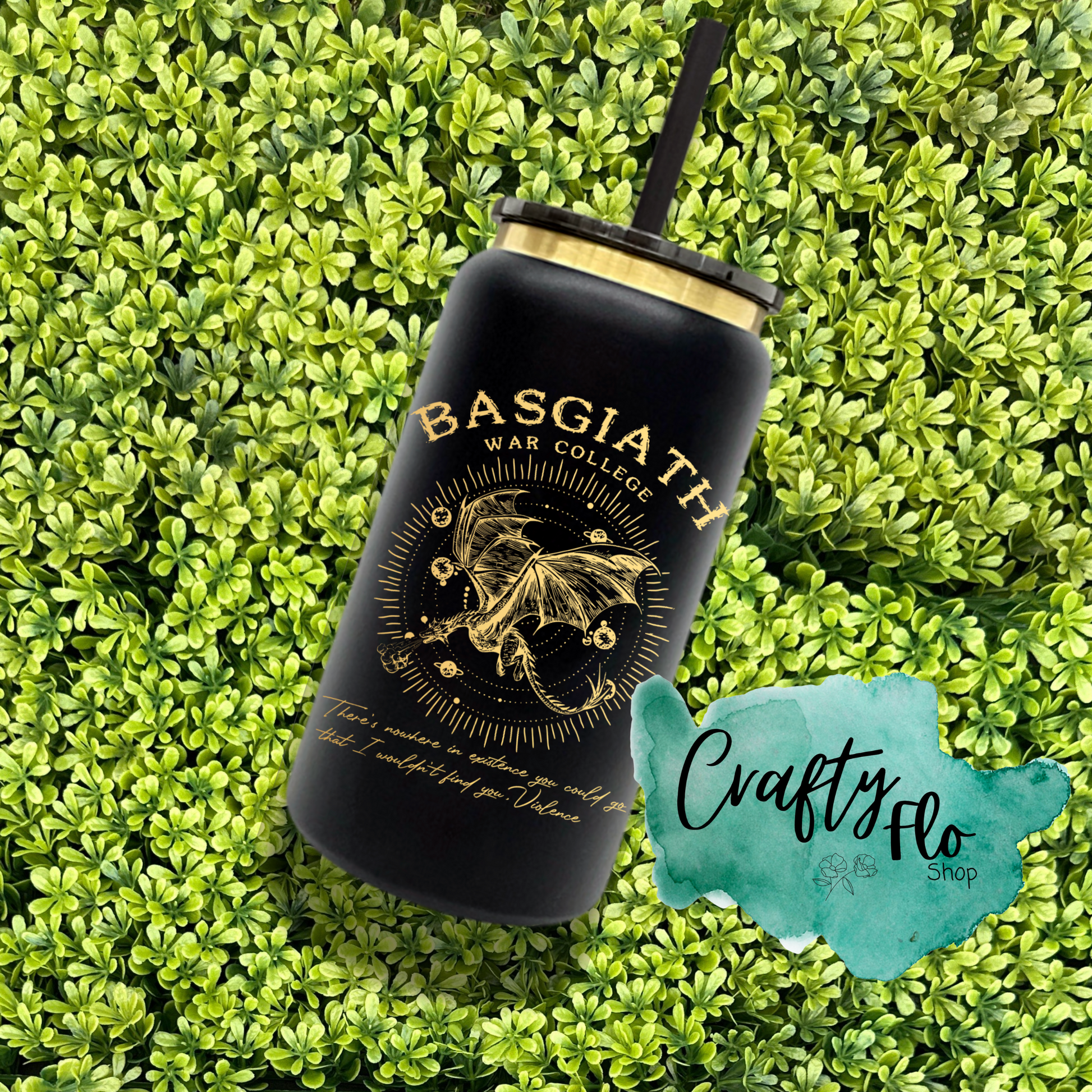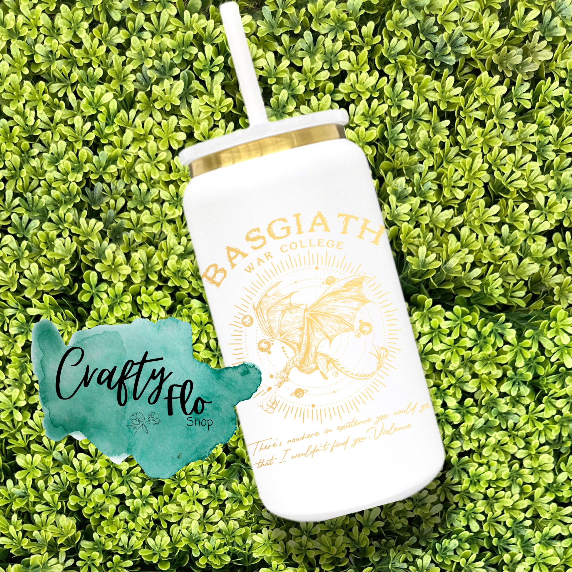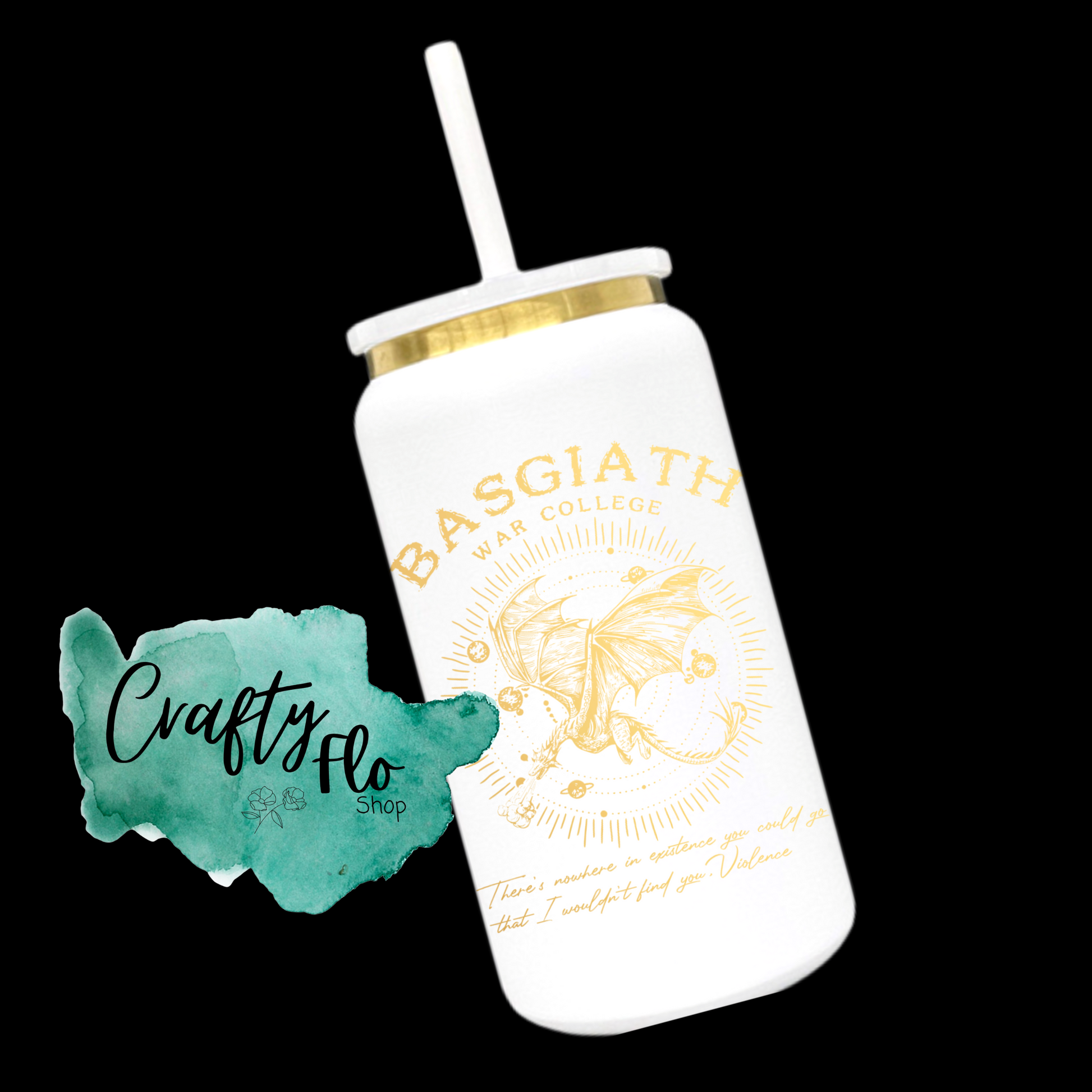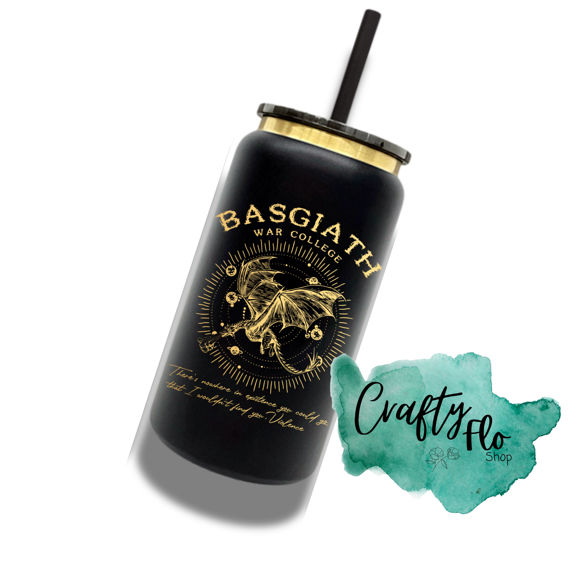 Basgiath war college inspired 16 oz engraved gold plated stainless steel can Tumbler with Straw, Durable Design, acrylic Lid, Fun and Functional Beverage Drinkware