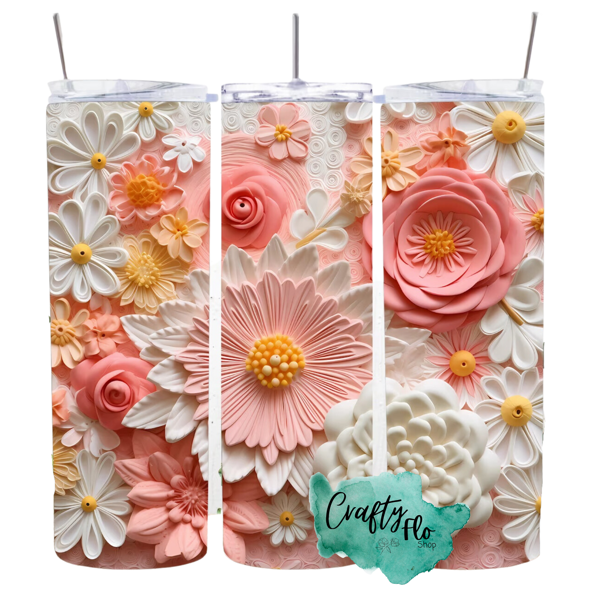 Beautiful 3D Flower art 20oz stainless steel tumbler with straw