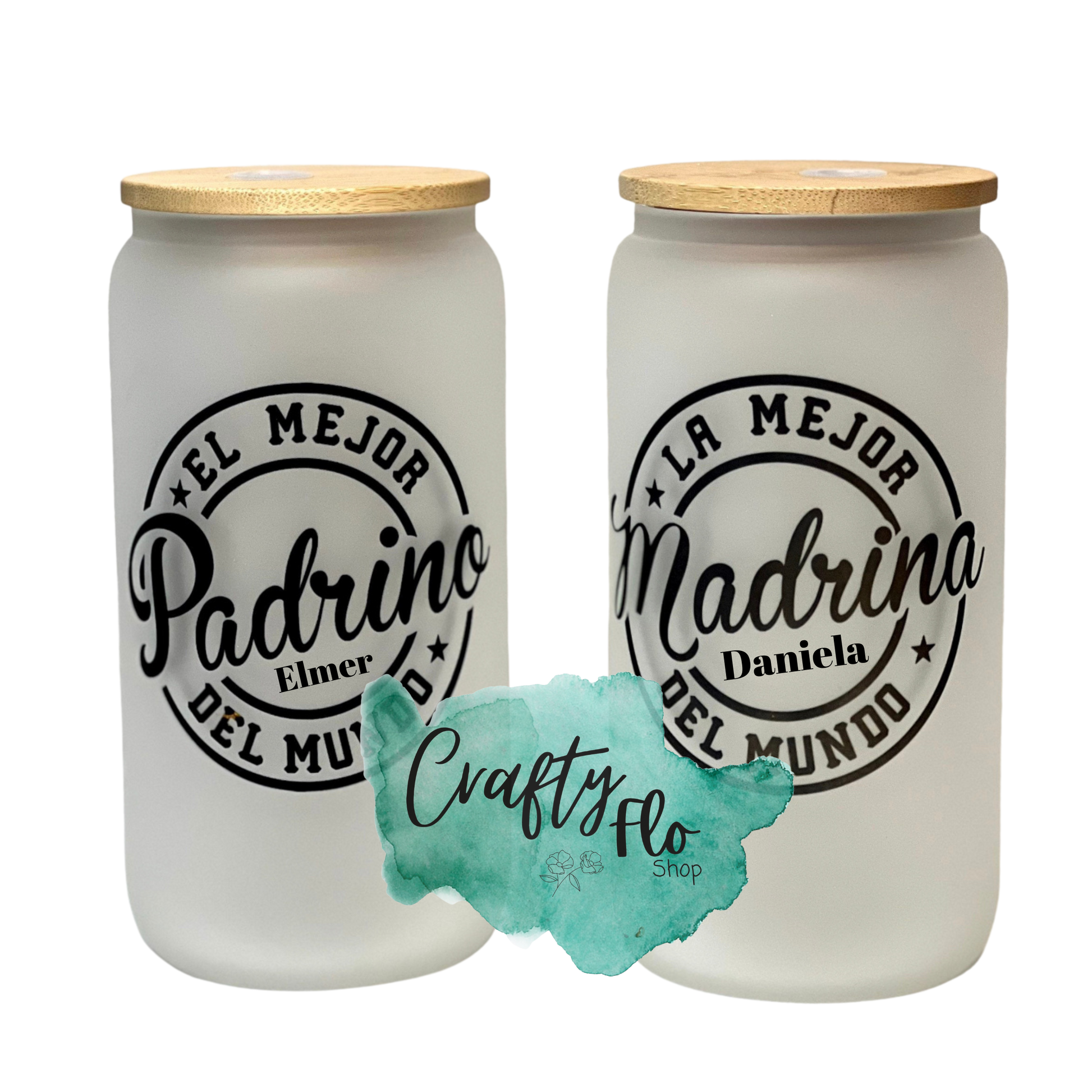 Best Padrino and Madrina| Mejor Padrino, Mejor Madrina | 16oz frosted or clear glass can with straw/ add name at checkout