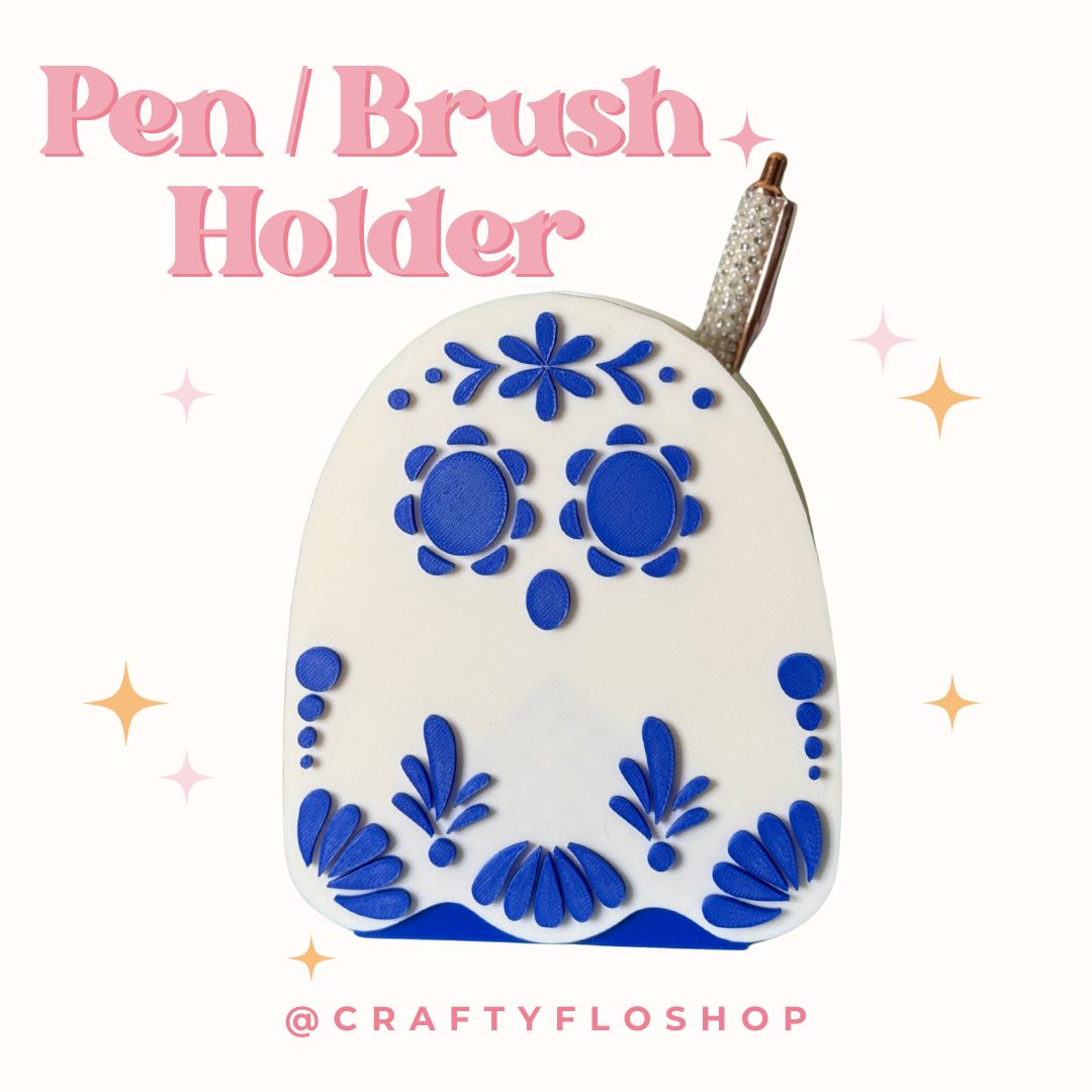 Dia de los Muertos Talavera Ghost Inspired Desk Organizer| Pen and Pencil Holder Custom 3D Printed Brush Holder Office Study Stationery Desktop Storage Marker Organizer