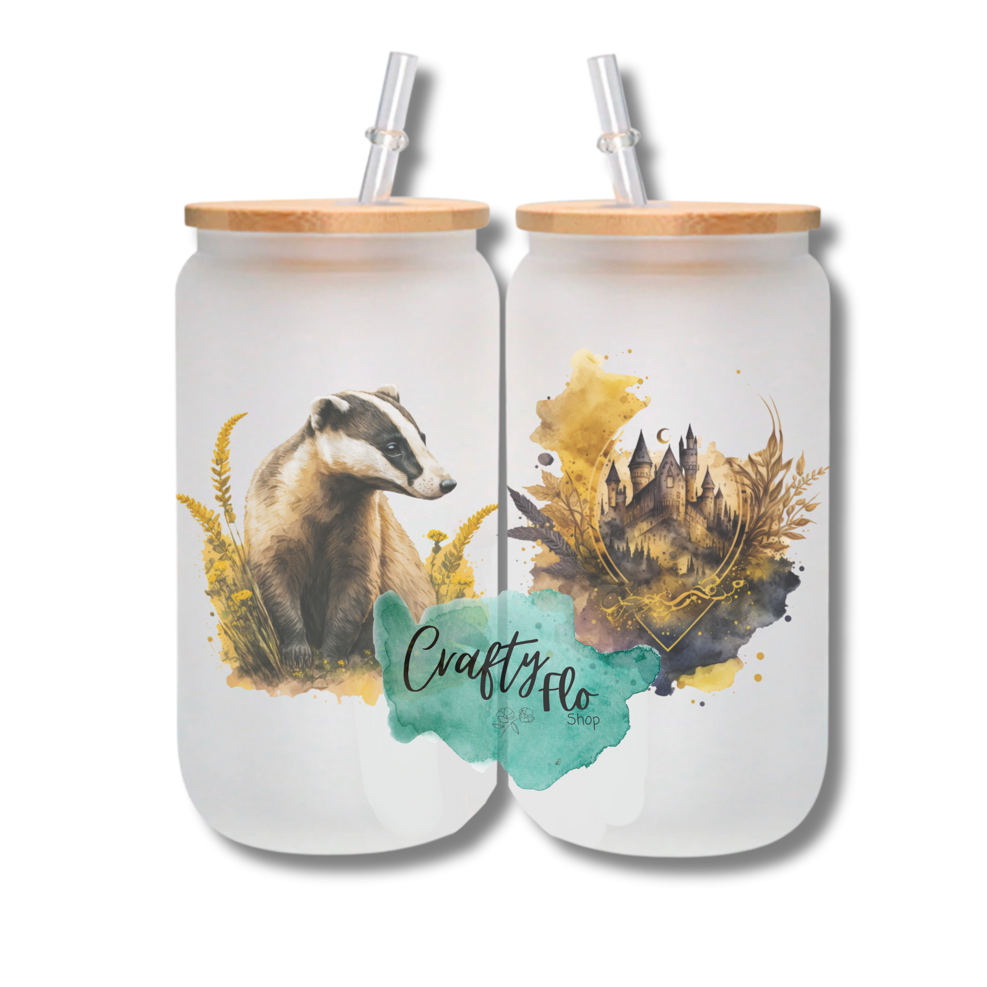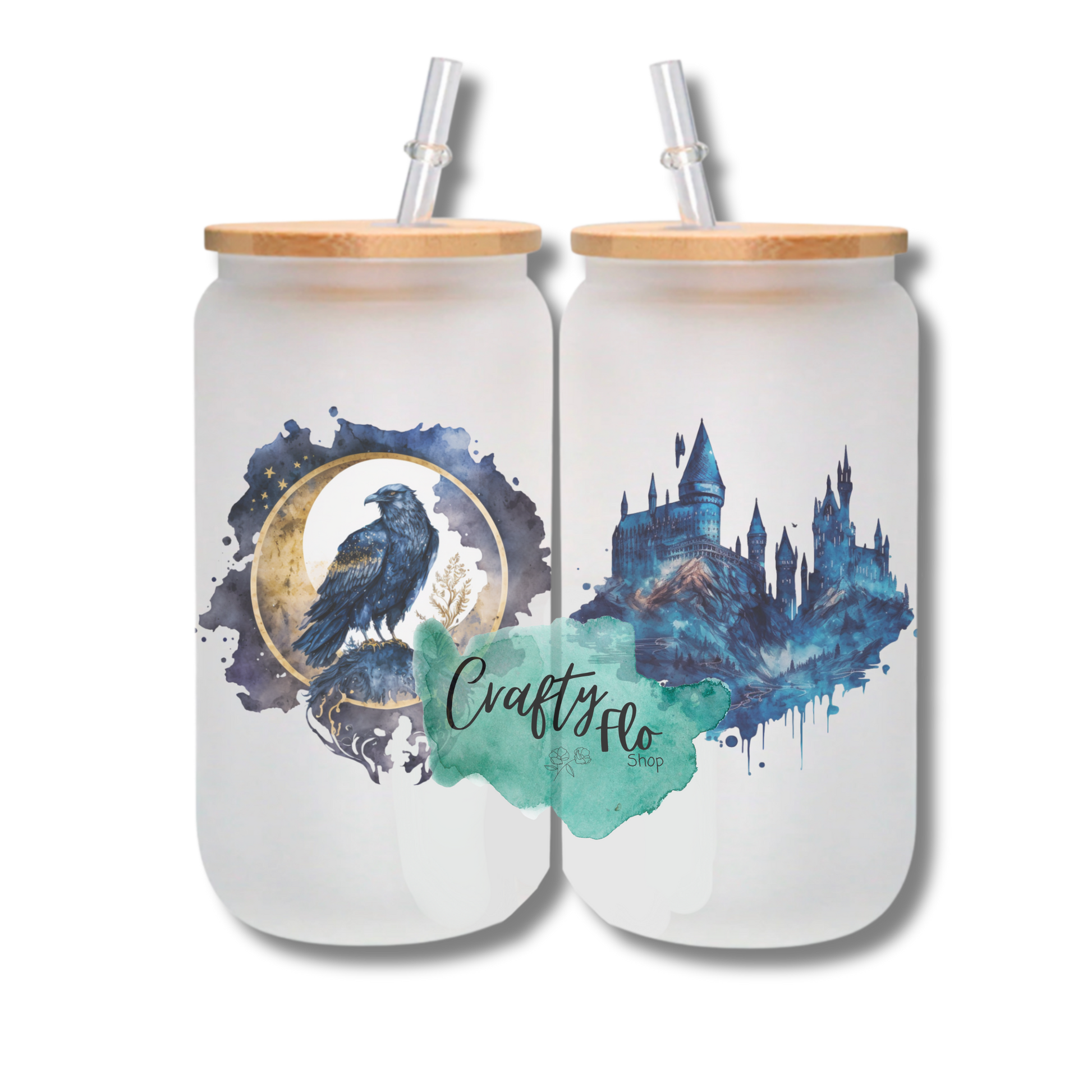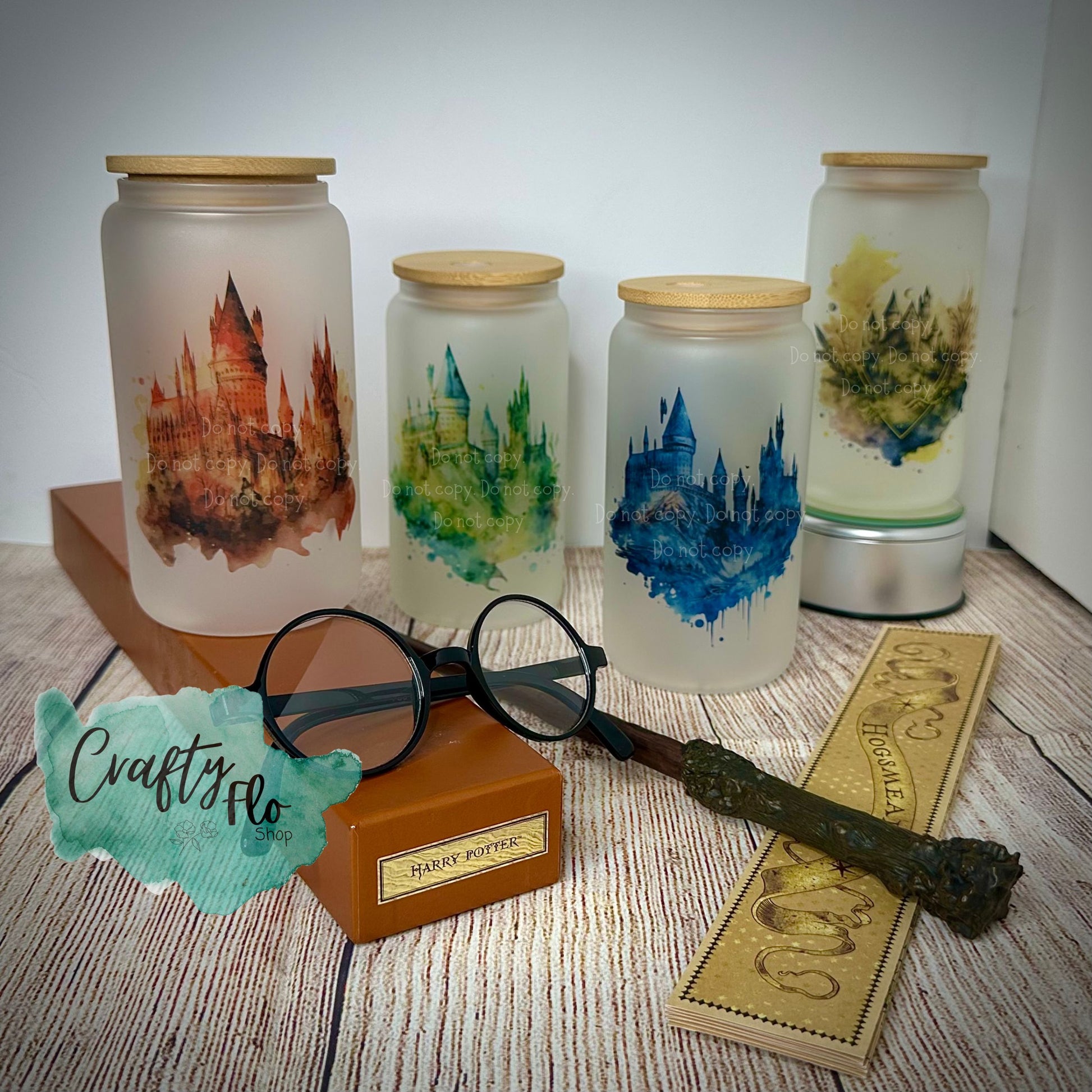 Legacy Wizarding School of Magic Houses 16oz Glass Cups with bamboo lid and straw