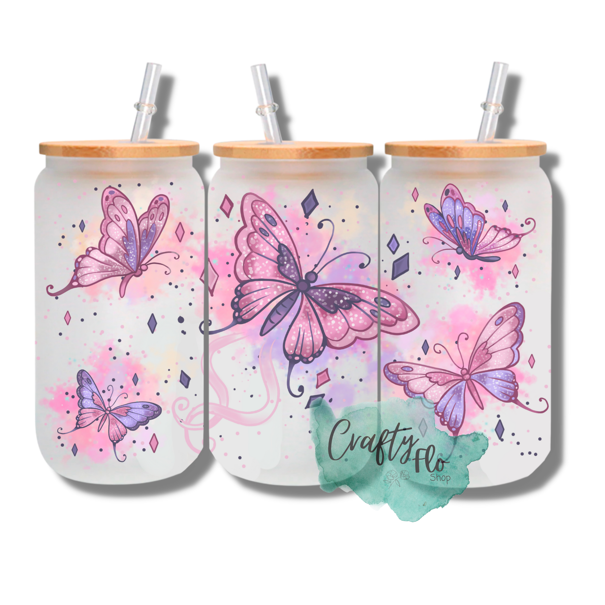 Magical butterfly inspired customizable 16oz glass can with bamboo lid and straw| mothers day, birthday gift| cute butterfly cup