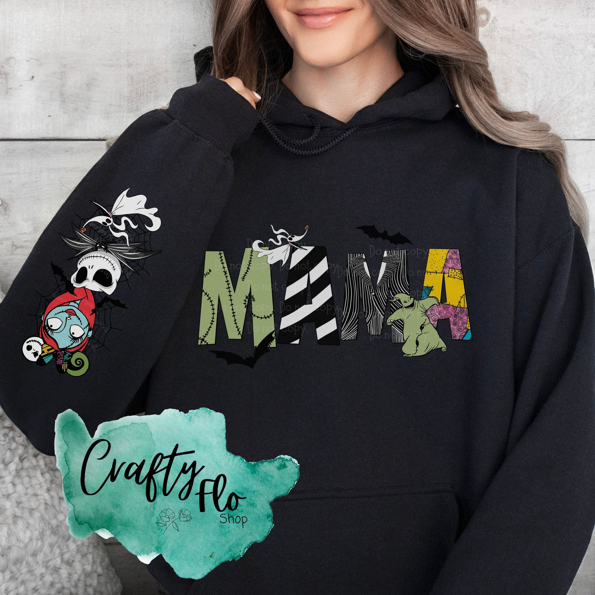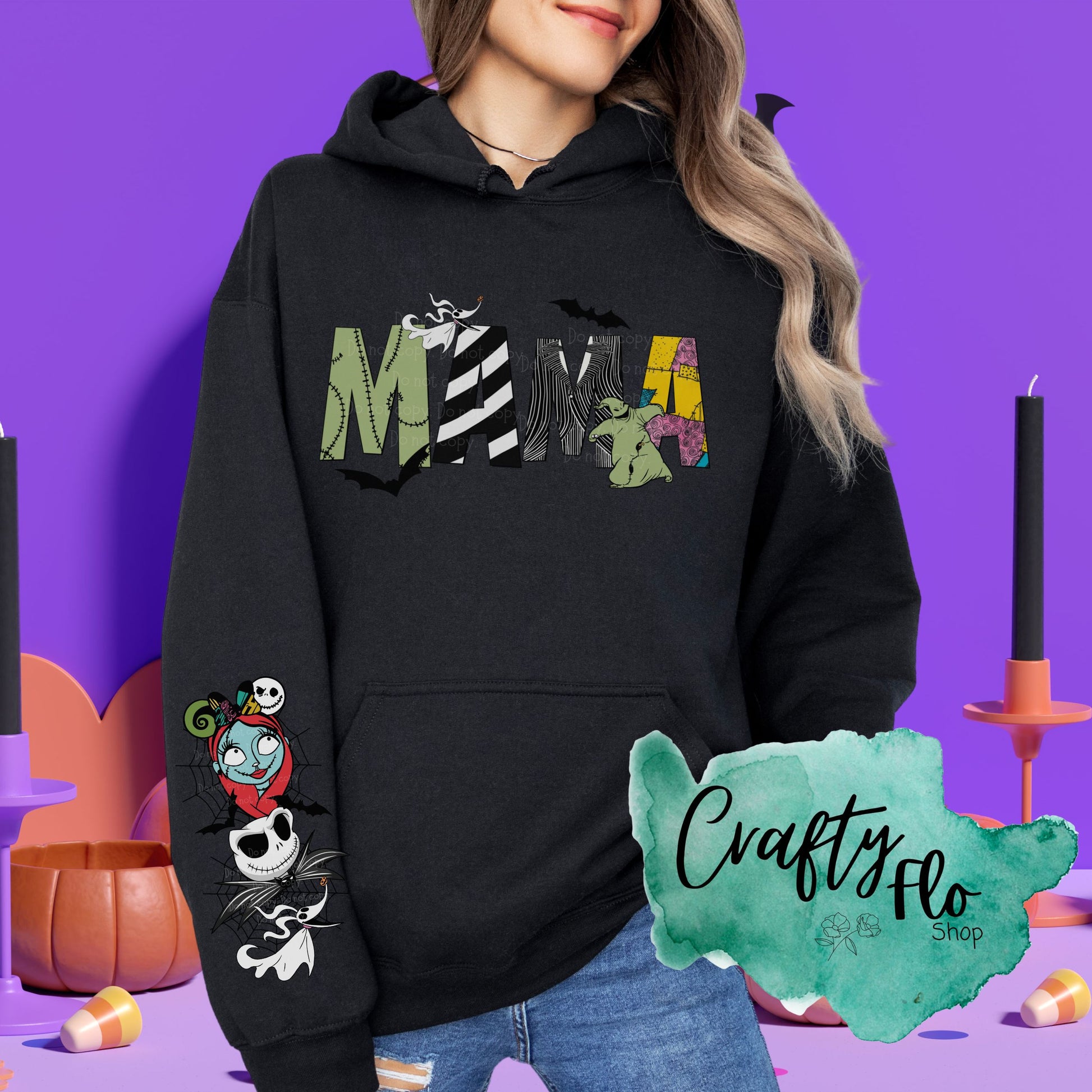 Stay cozy and stylish with our Nightmare before Christmas inspired Mama hoodie! This comfortable hoodie is the perfect addition to any mama's wardrobe who's a fan of the classic movie.