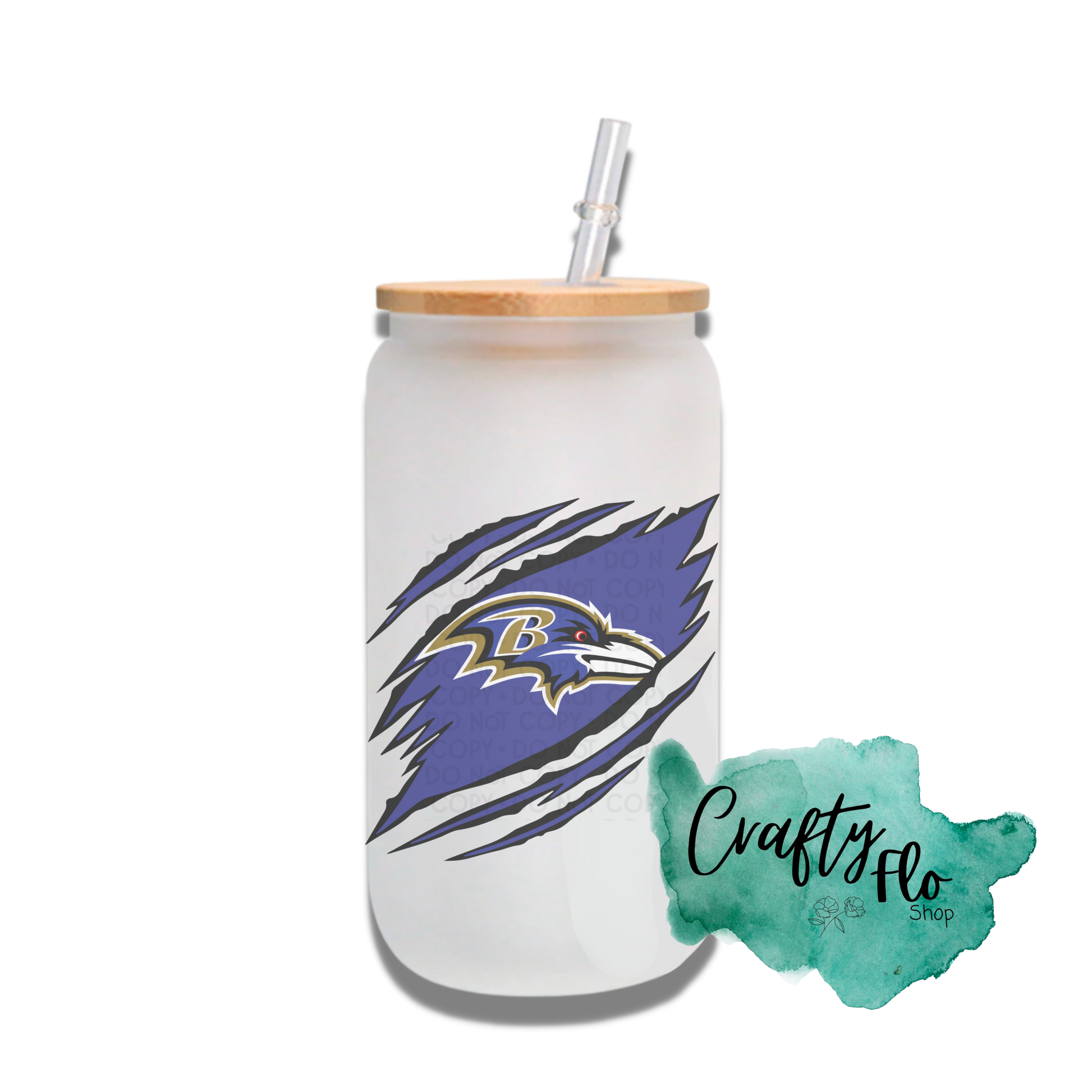 Personalizable Baltimore Ravens Inspired Theme 16oz glass can with straw/ Add name at checkout
