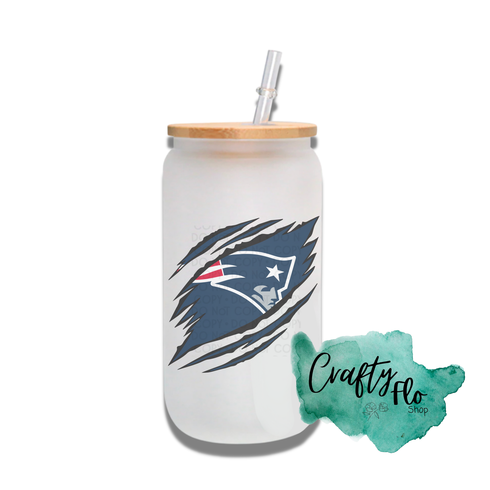 Personalizable Patriots Inspired Inspired Theme 16oz glass can with straw/ Add name at checkout