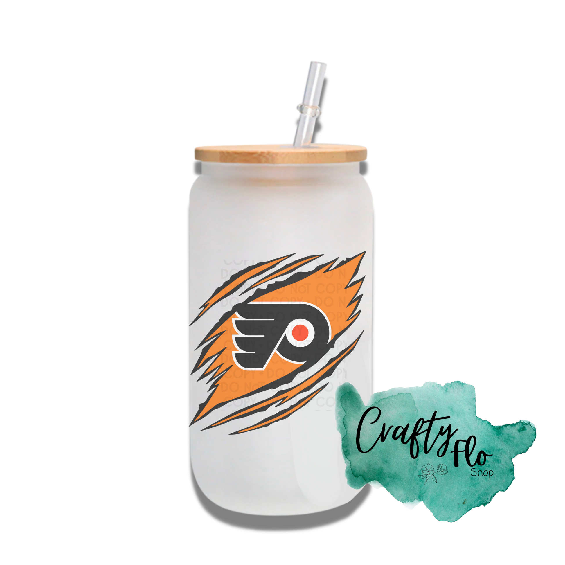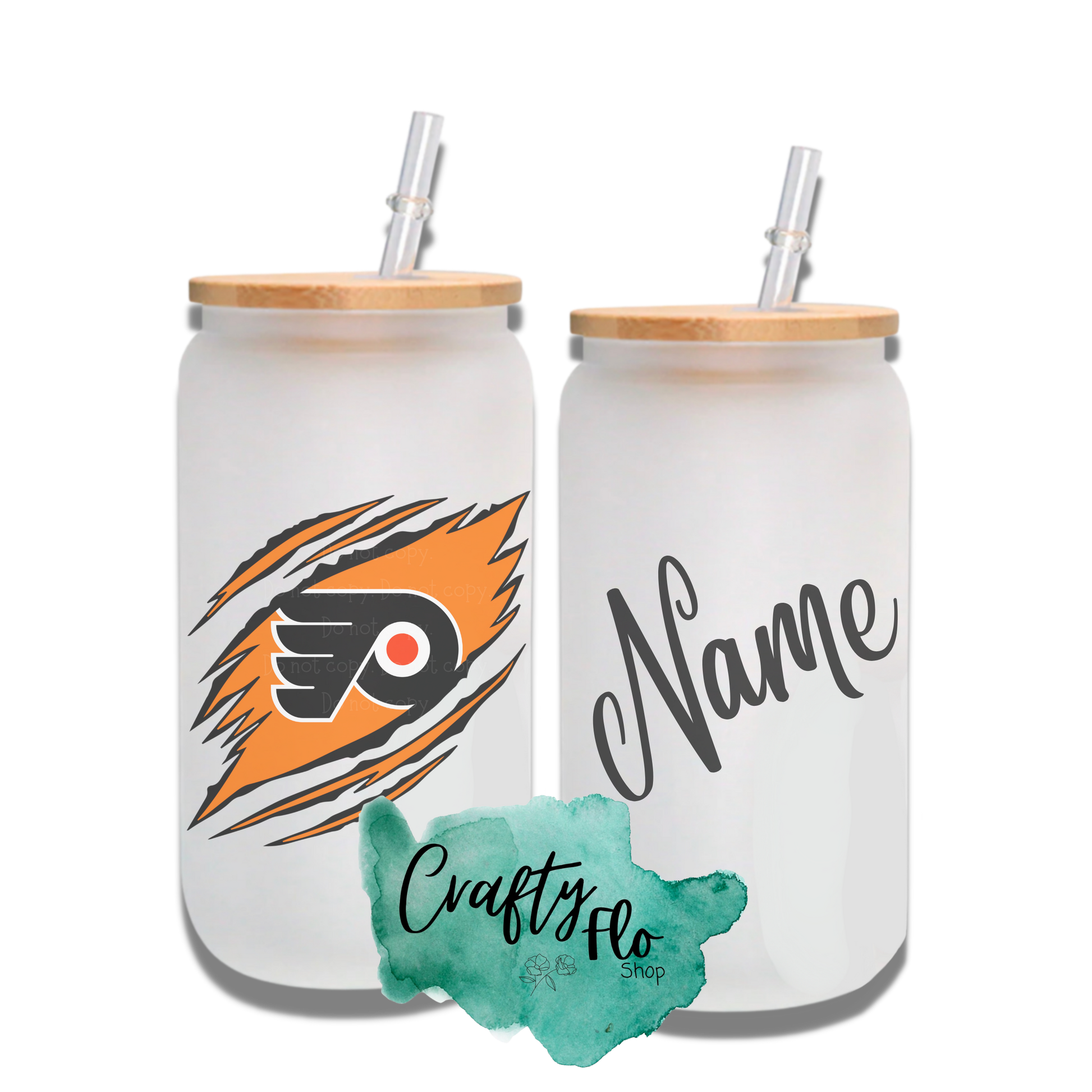 Personalizable Philadelphia Flyers Inspired Inspired Theme 16oz glass can with straw/ Add name at checkout