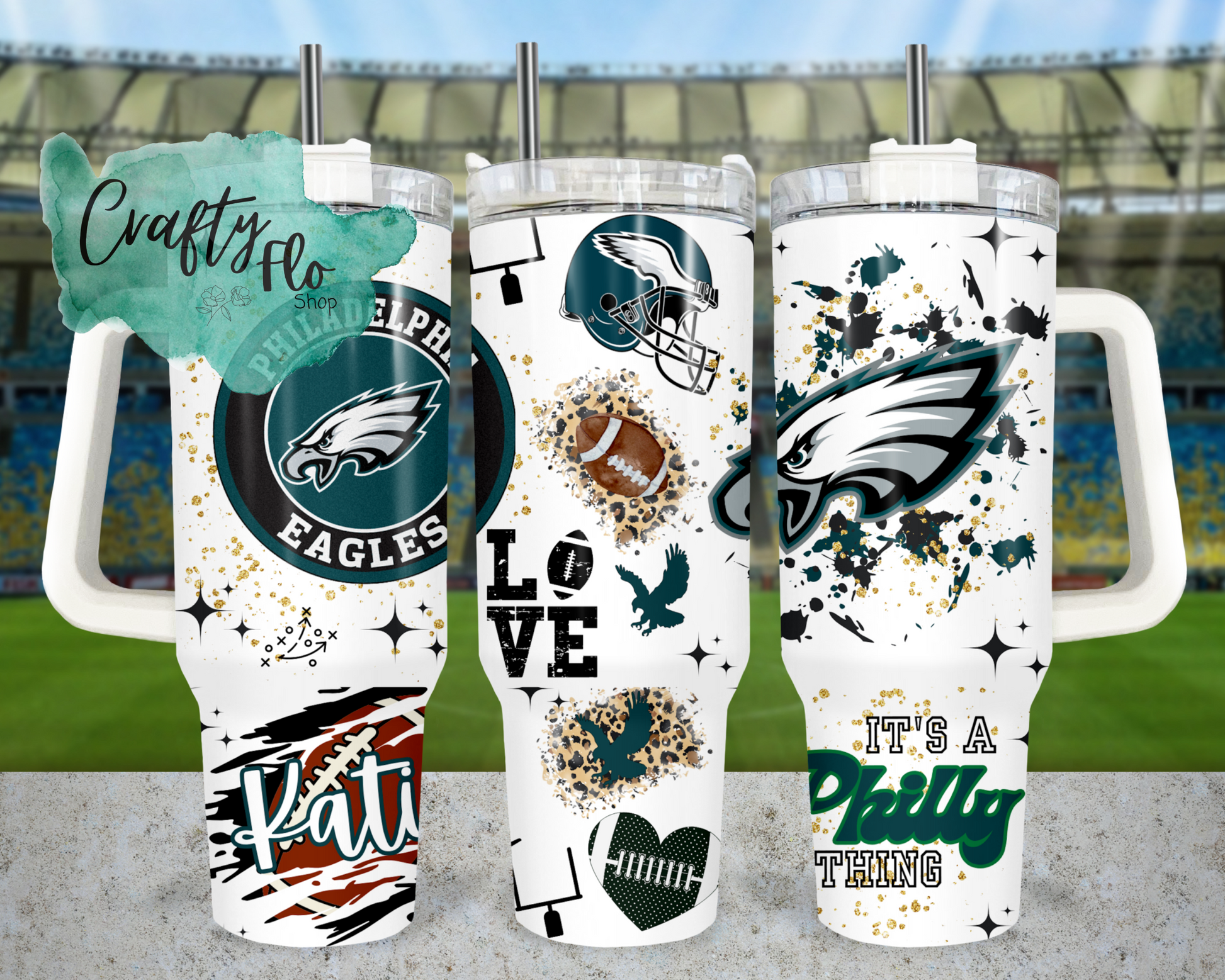 Personalizable Philly football eagles INSPIRED 40 oz quencher tumbler with lid and straw/ Add name at checkout