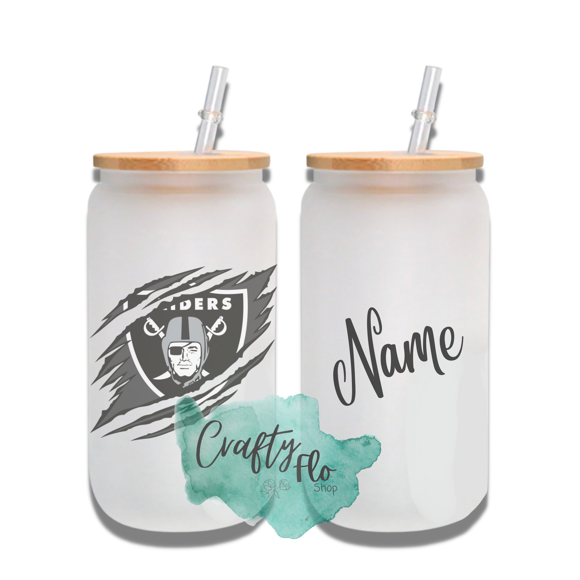 Personalizable Raiders Inspired Theme 16oz glass can with straw/ Add name at checkout