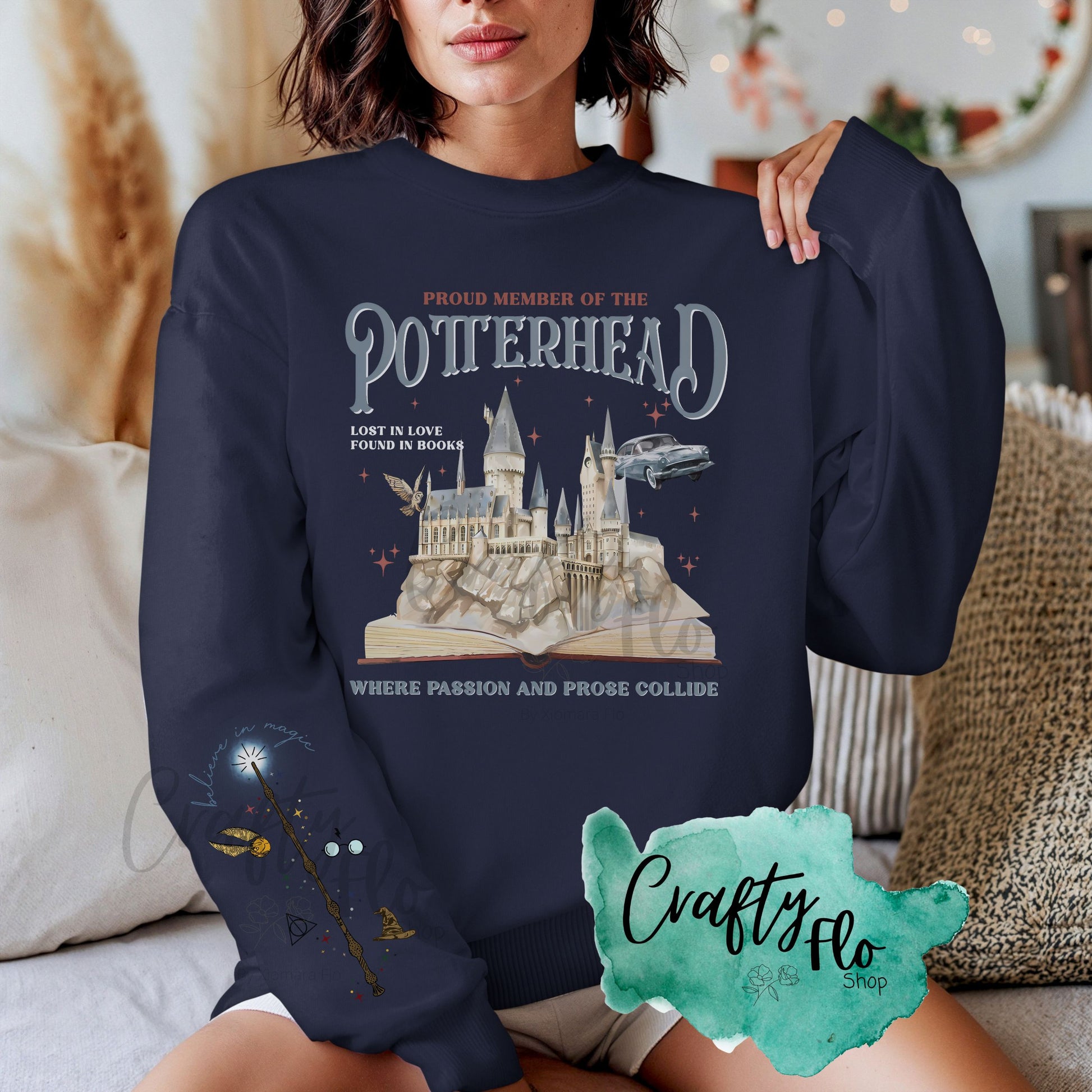 Potterhead wizarding inspired Sweatshirt with front and sleeve designs | friend gift