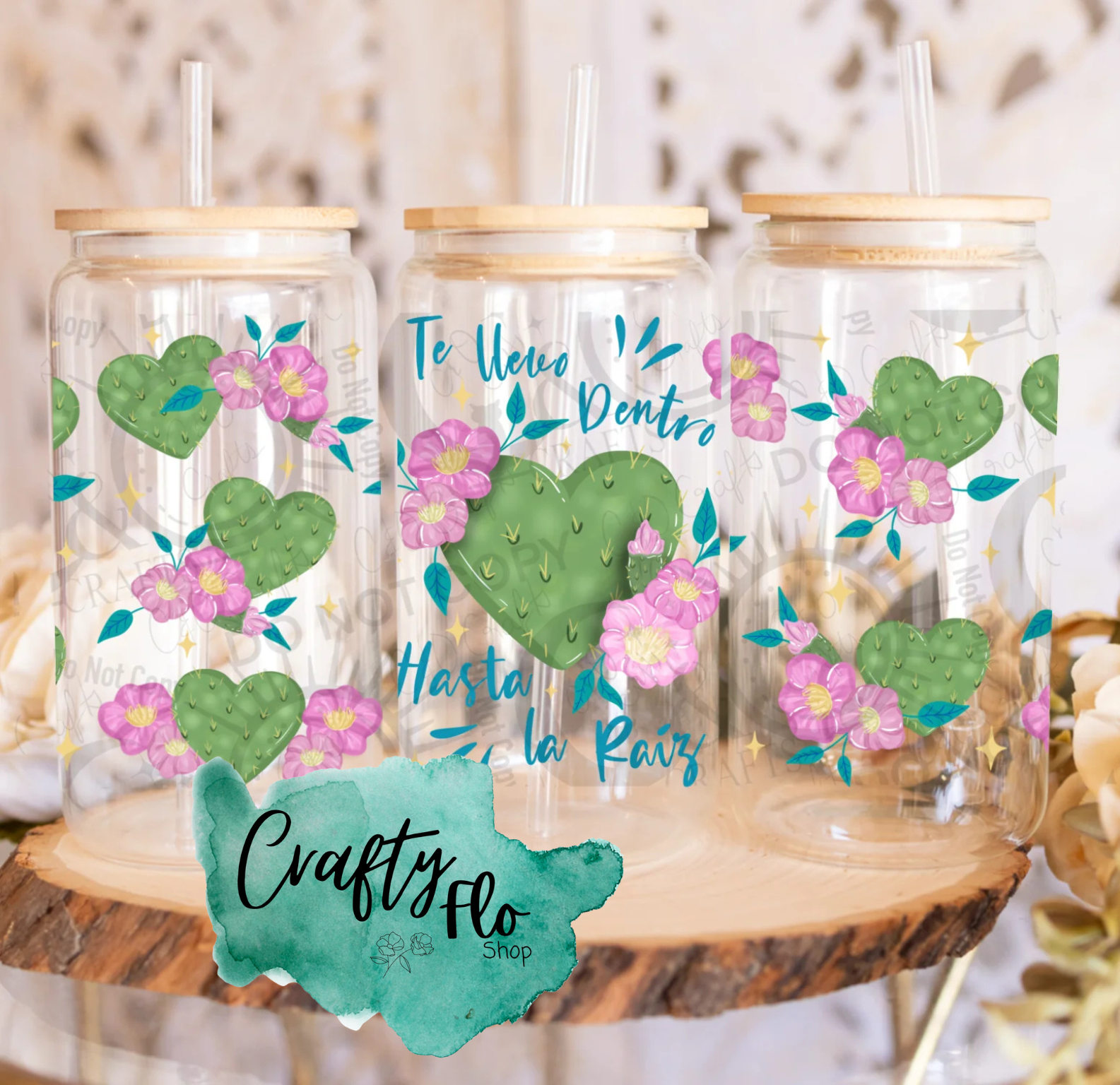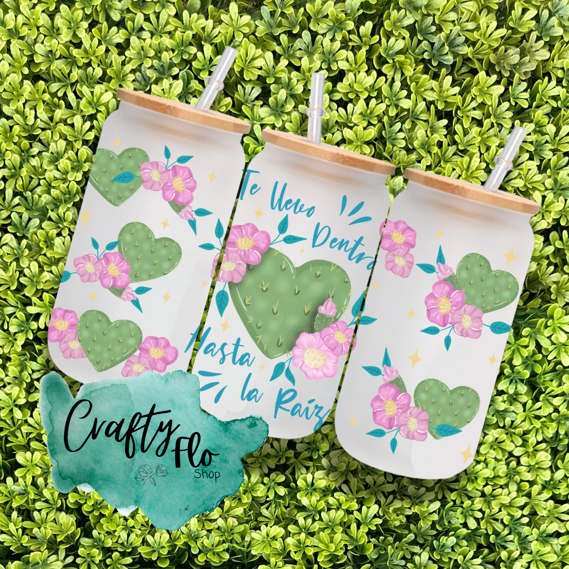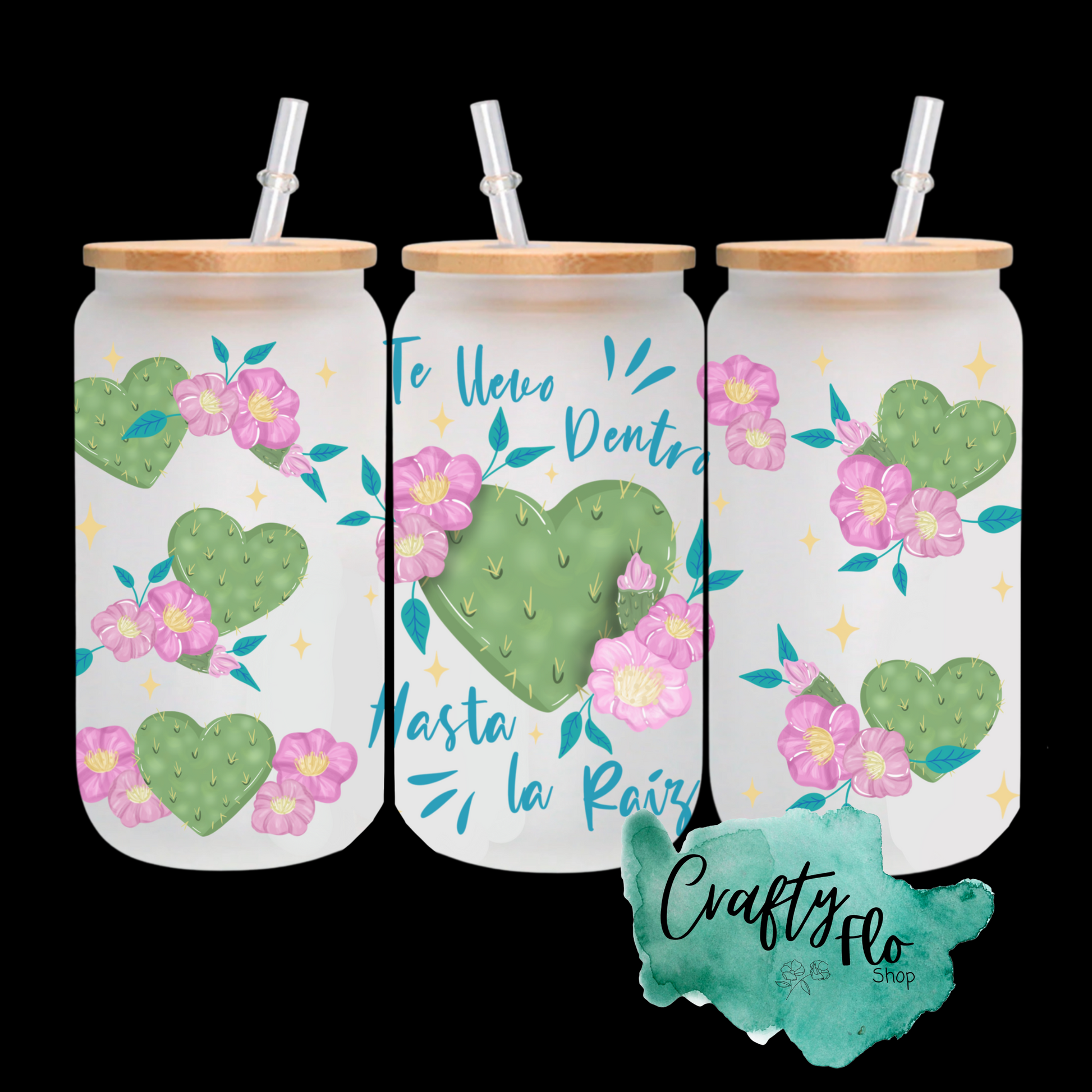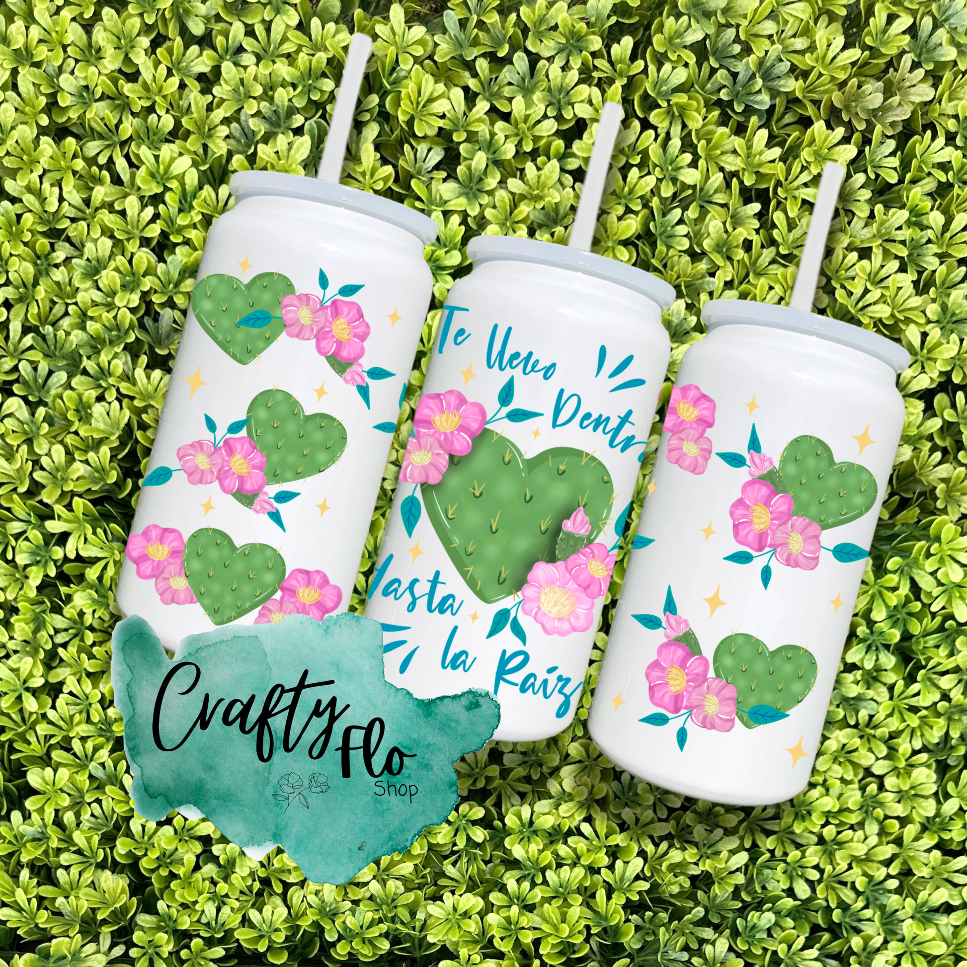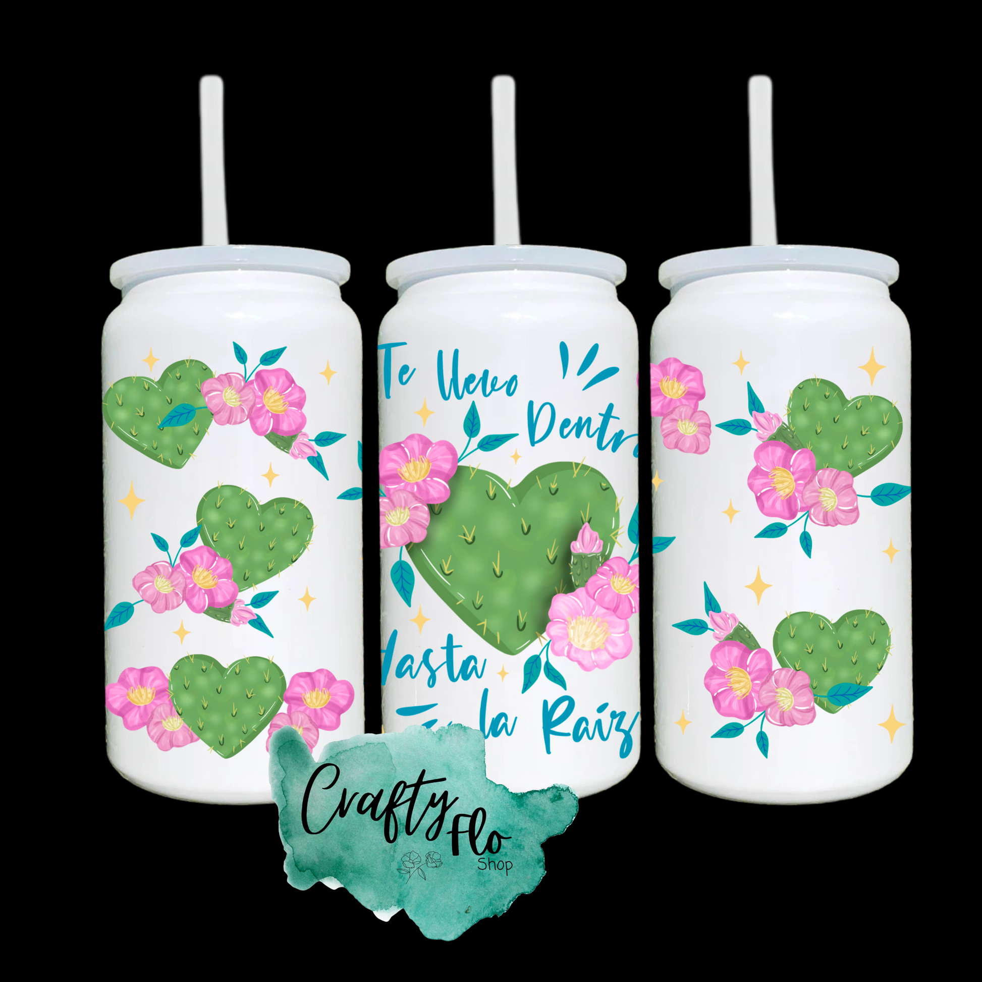 Te llevo 16 oz glass or stainless steel can Tumbler with Straw, Durable Design, bamboo or acrylic Lid, Fun and Functional Beverage Drinkware
