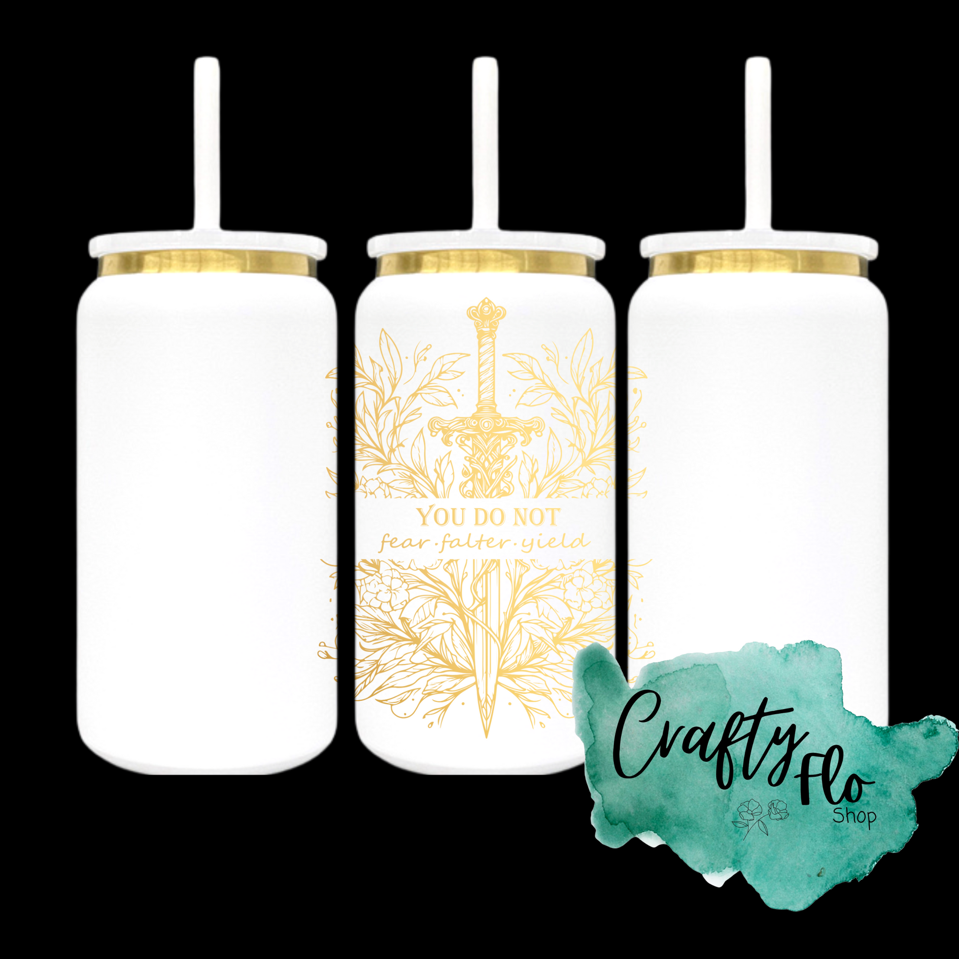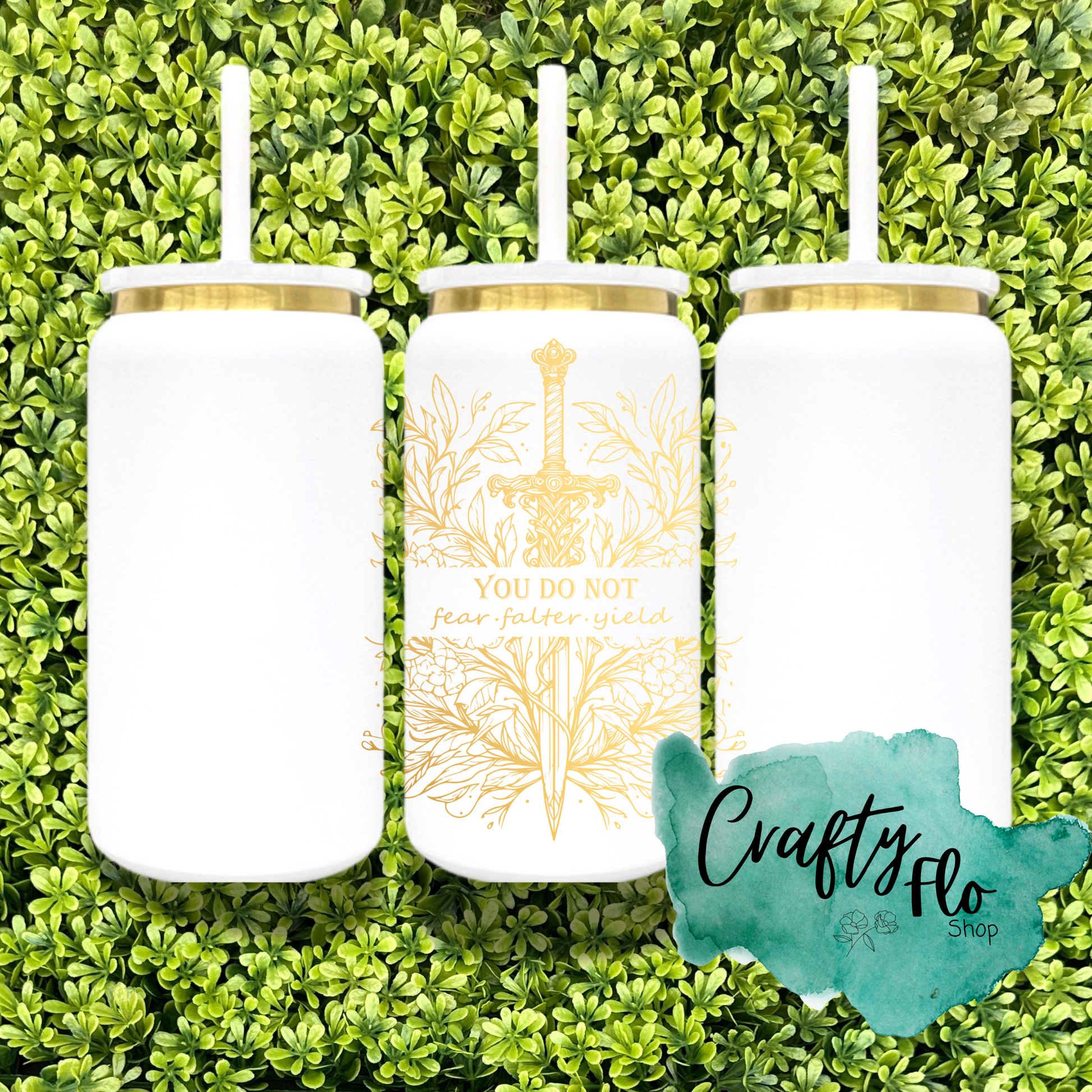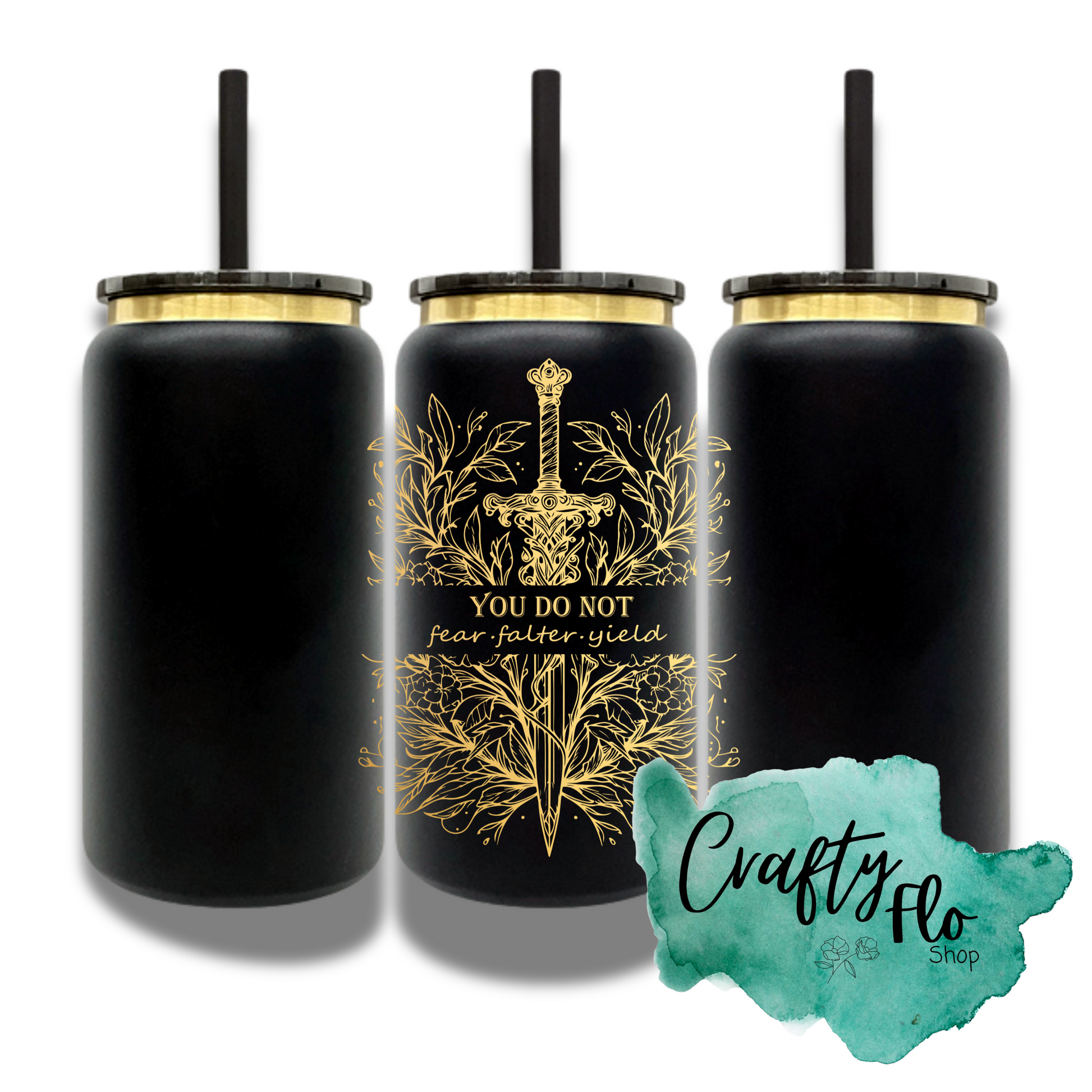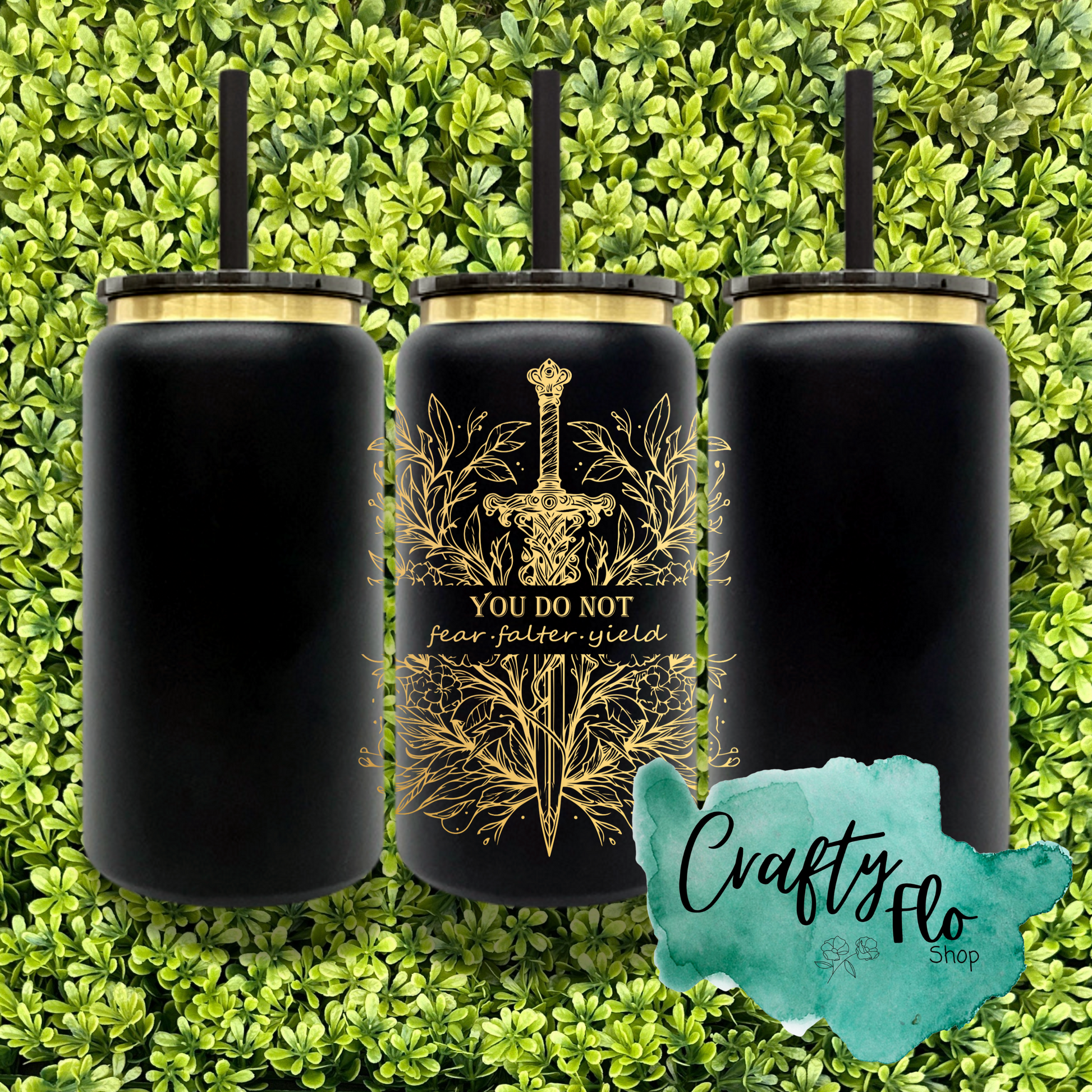 You do not fear, falter or yield 16 oz engraved gold plated stainless steel can Tumbler with Straw, Durable Design, acrylic Lid, Fun and Functional Beverage Drinkware