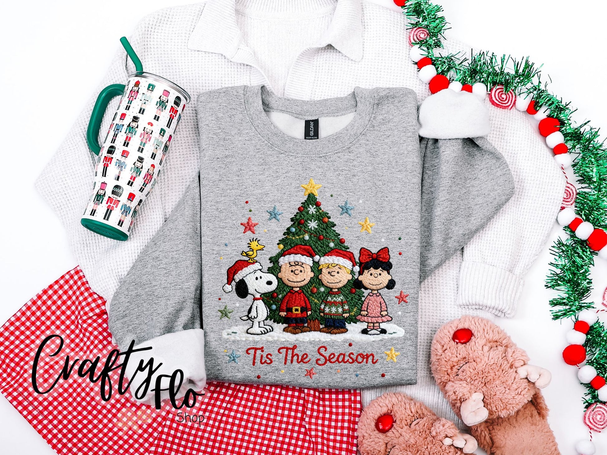 Faux Crochet Snoop & friends christmas Sweatshirt - Unisex Fabric - Ideal for Holiday Fashion - True to Size Fit - Pullover Womenswear Garment