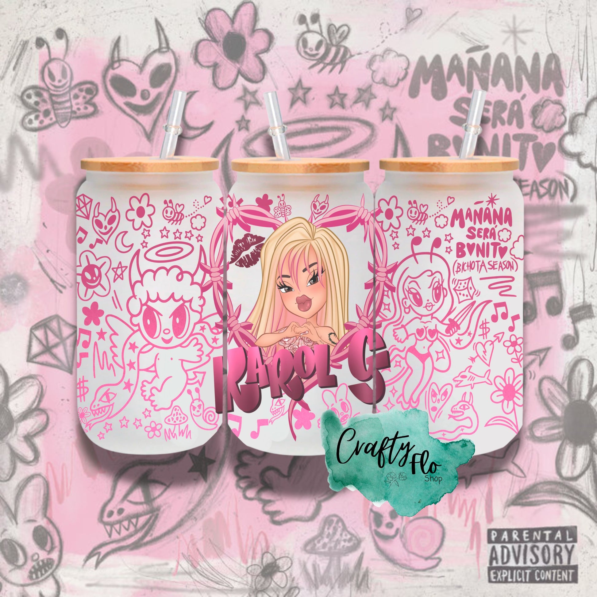 KG Doll Mañana sera bonito album inspired 16oz frosted or clear glass cup with bamboo lid and straw| bichota fan glass can