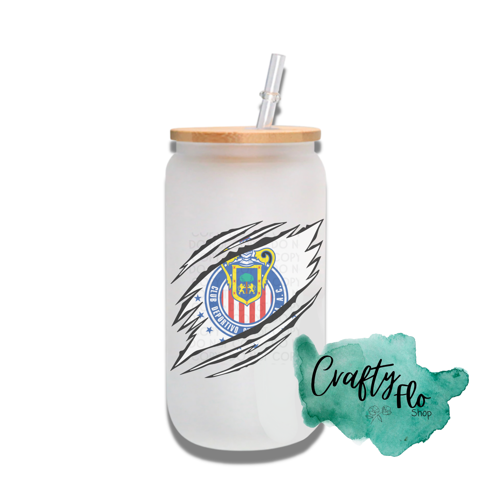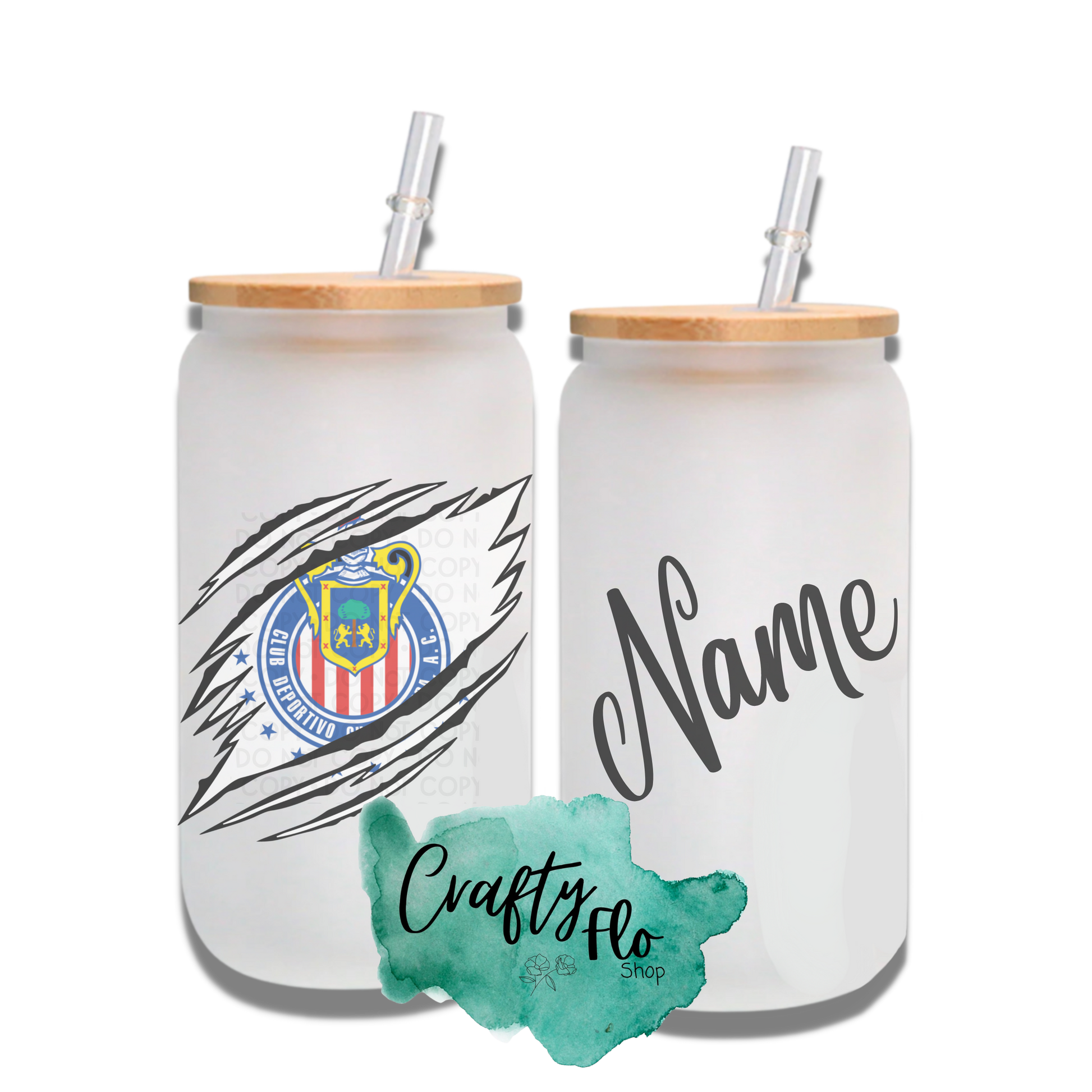 Personalizable Chivas Inspired Inspired Theme 16oz glass can with straw/ Add name at checkout