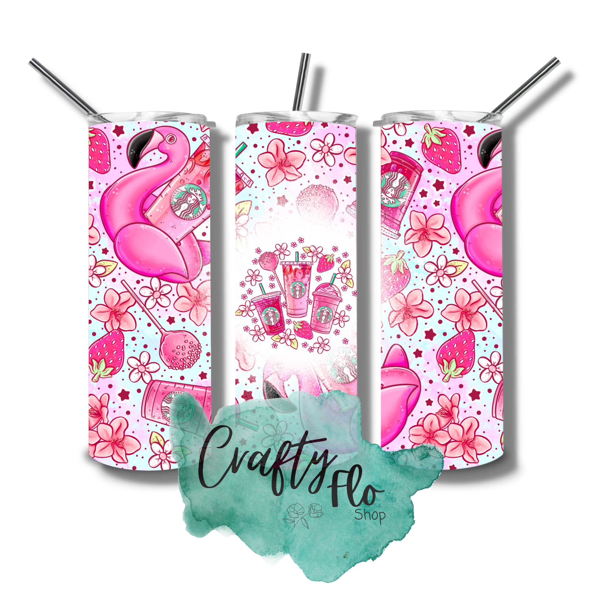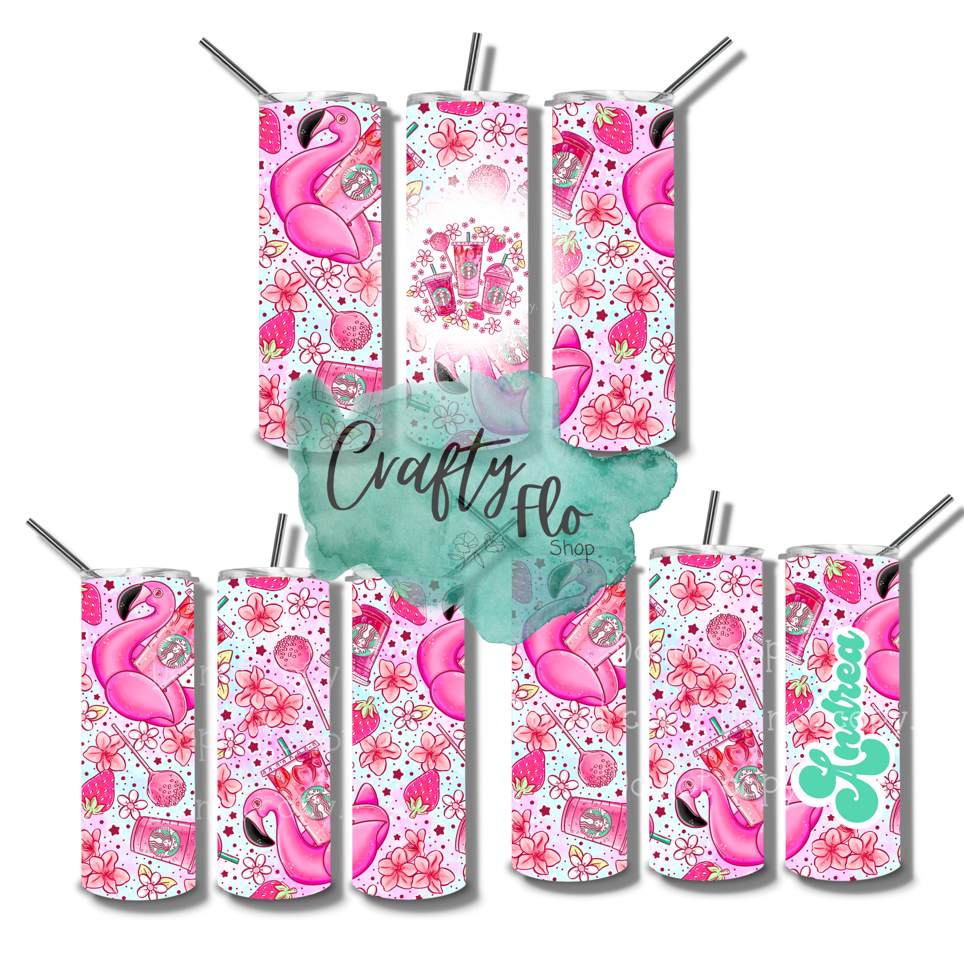 Personalizable favorite coffee house pink drinks inspired 20oz stainless steel tumbler with straw / add name at checkout