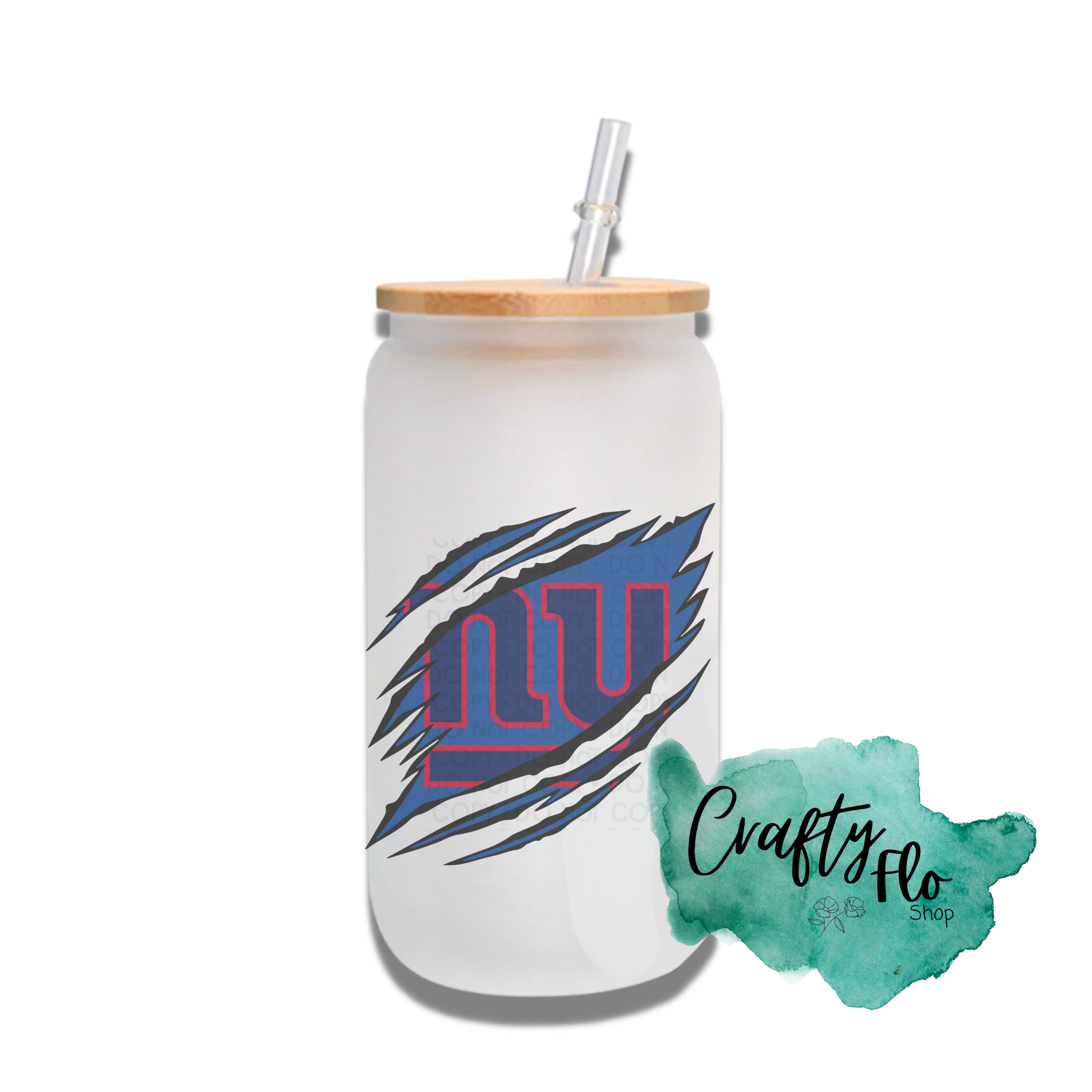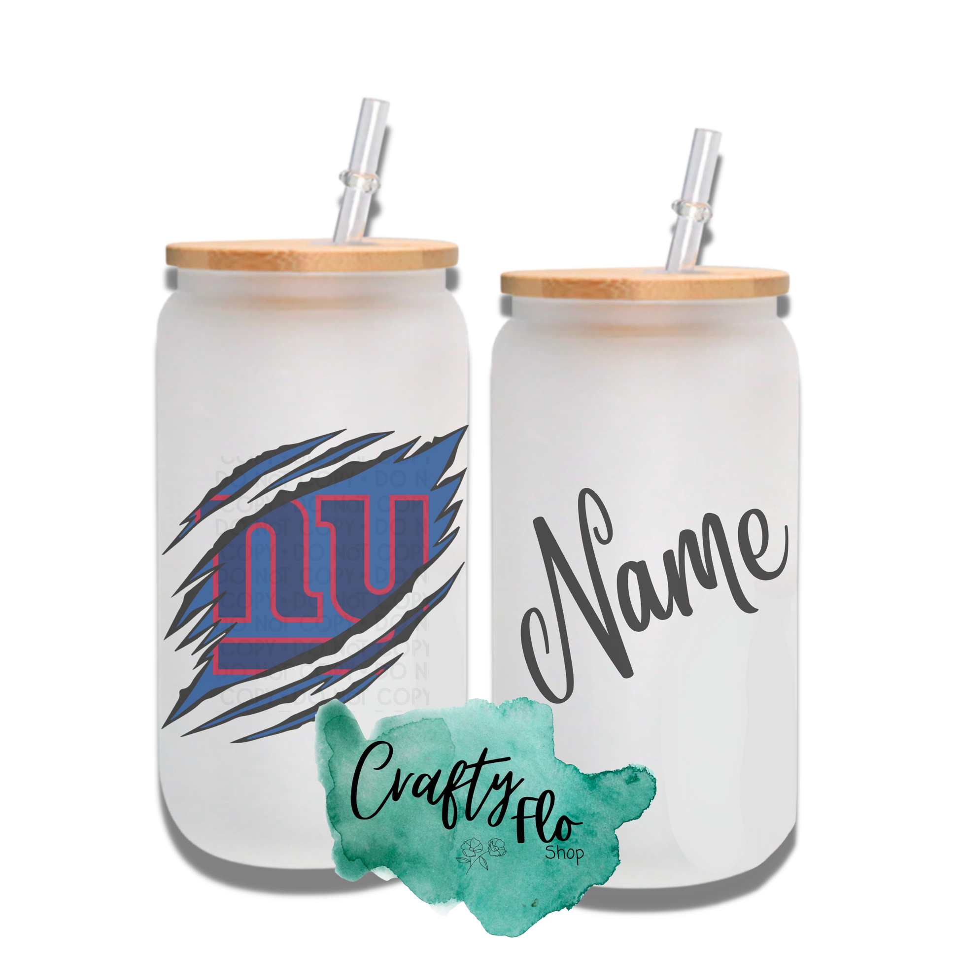 Personalizable Giants Inspired Theme 16oz glass can with straw/ Add name at checkout