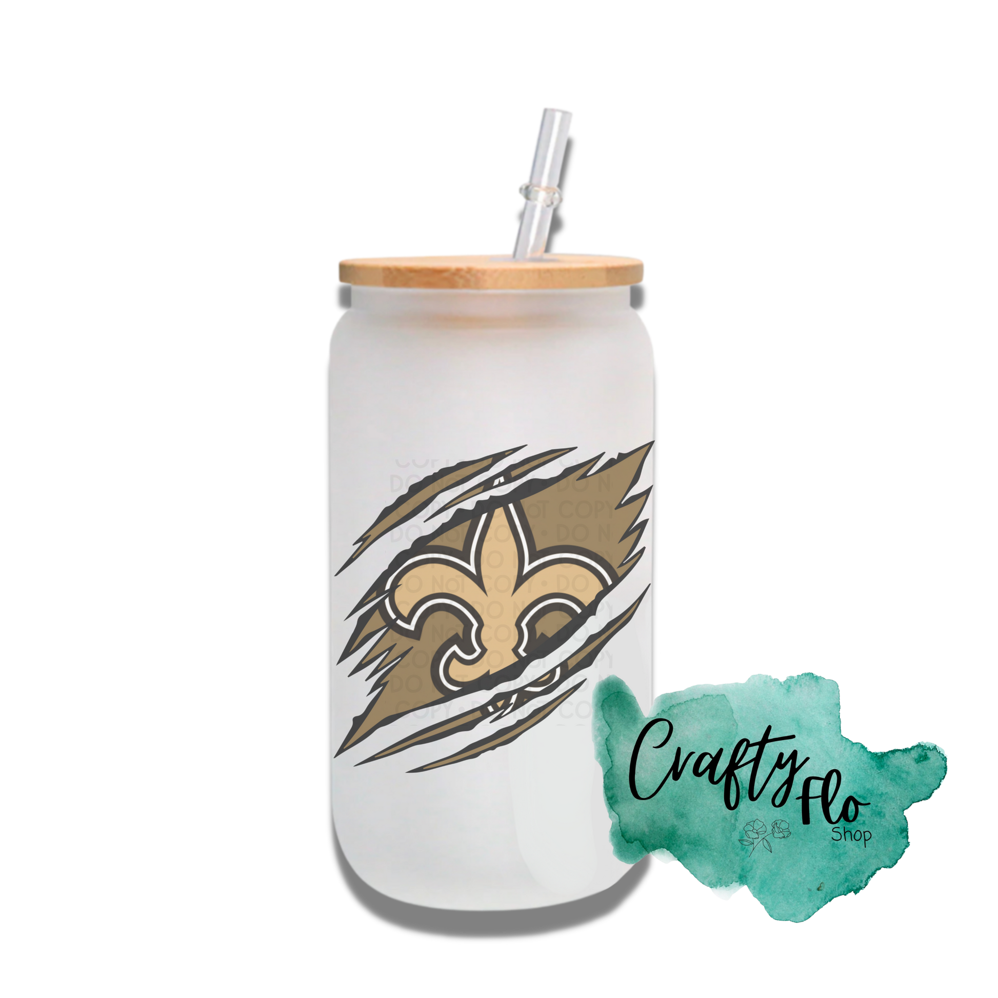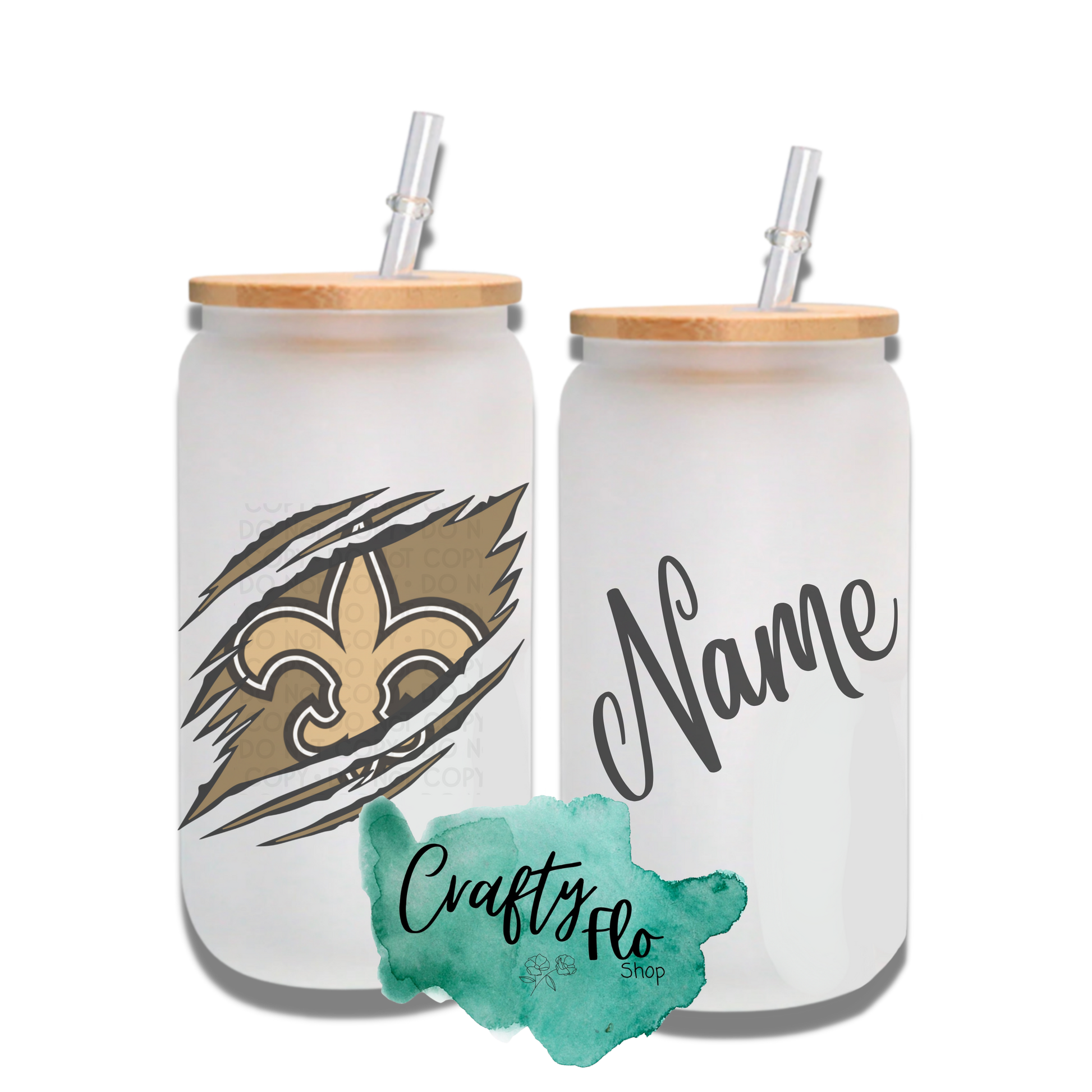 Personalizable Saints Inspired Inspired Theme 16oz glass can with straw/ Add name at checkout