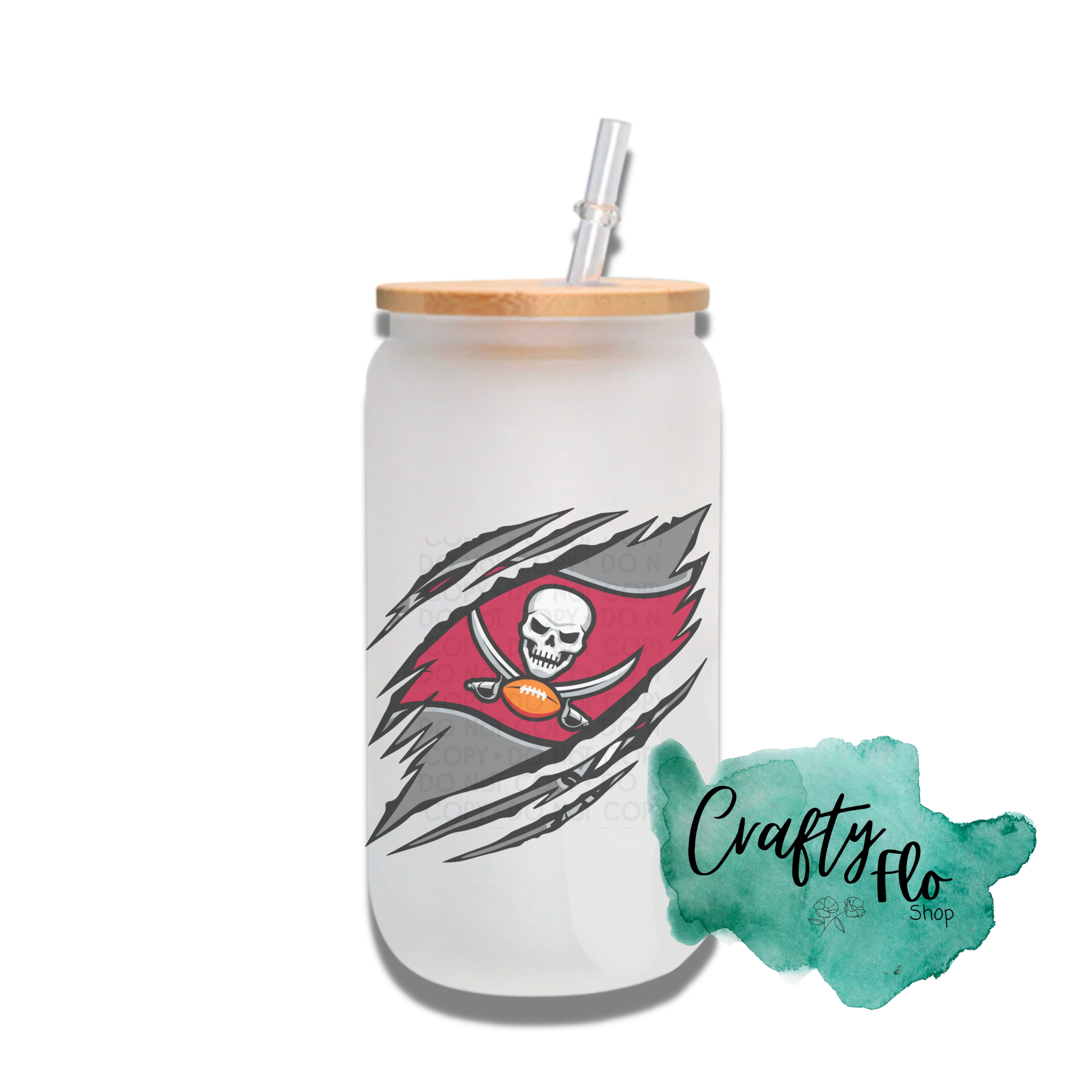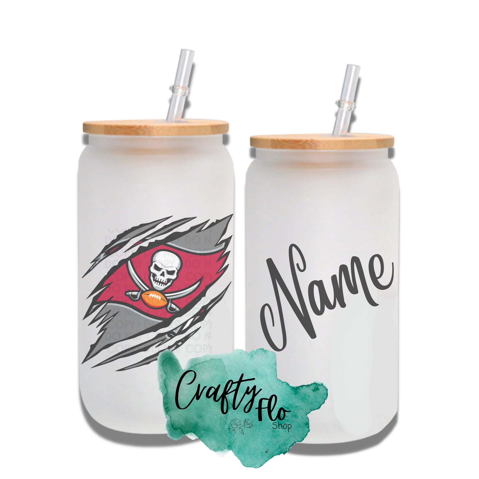 Personalizable Tampa Bay Buccaneers Inspired Theme 16oz glass can with straw/ Add name at checkout